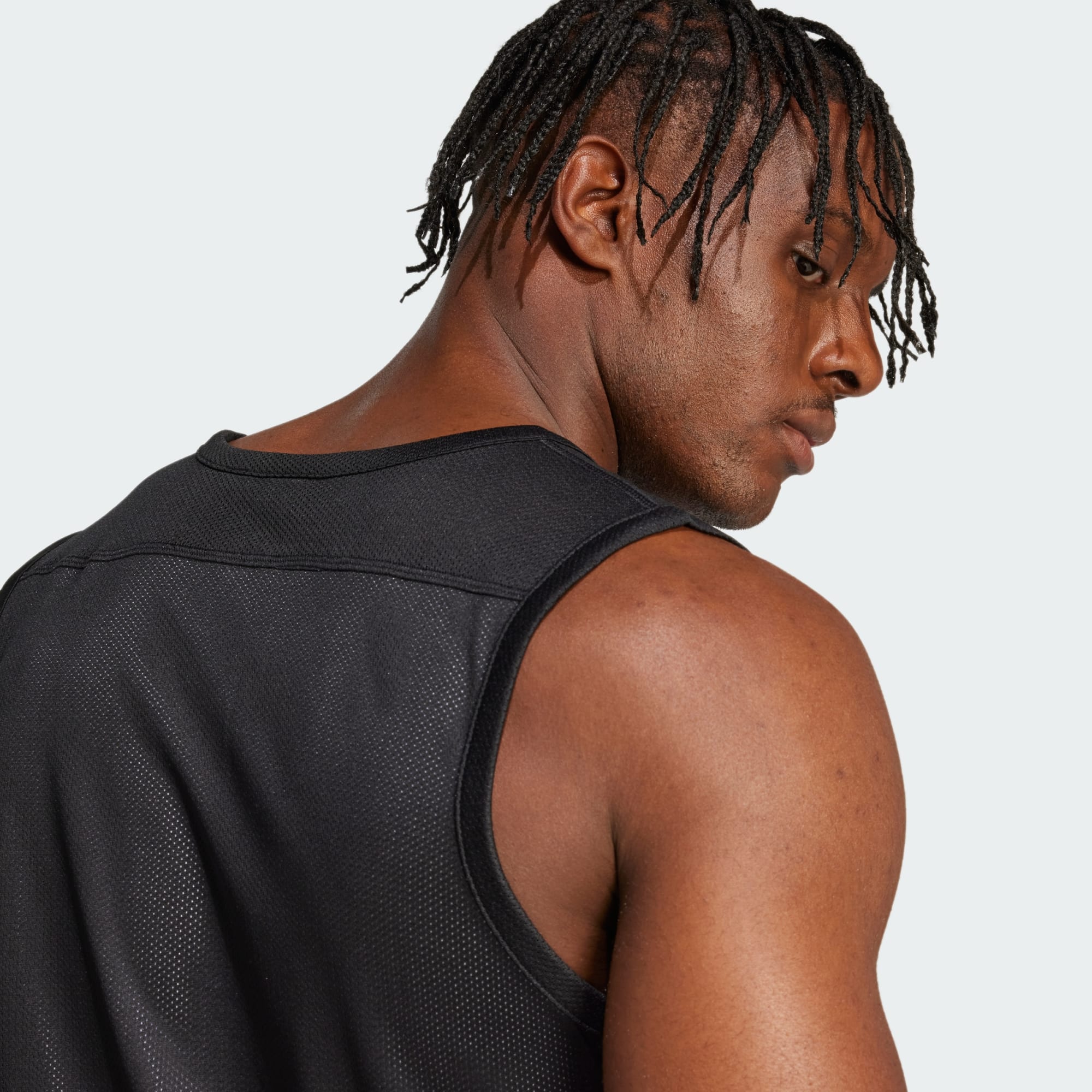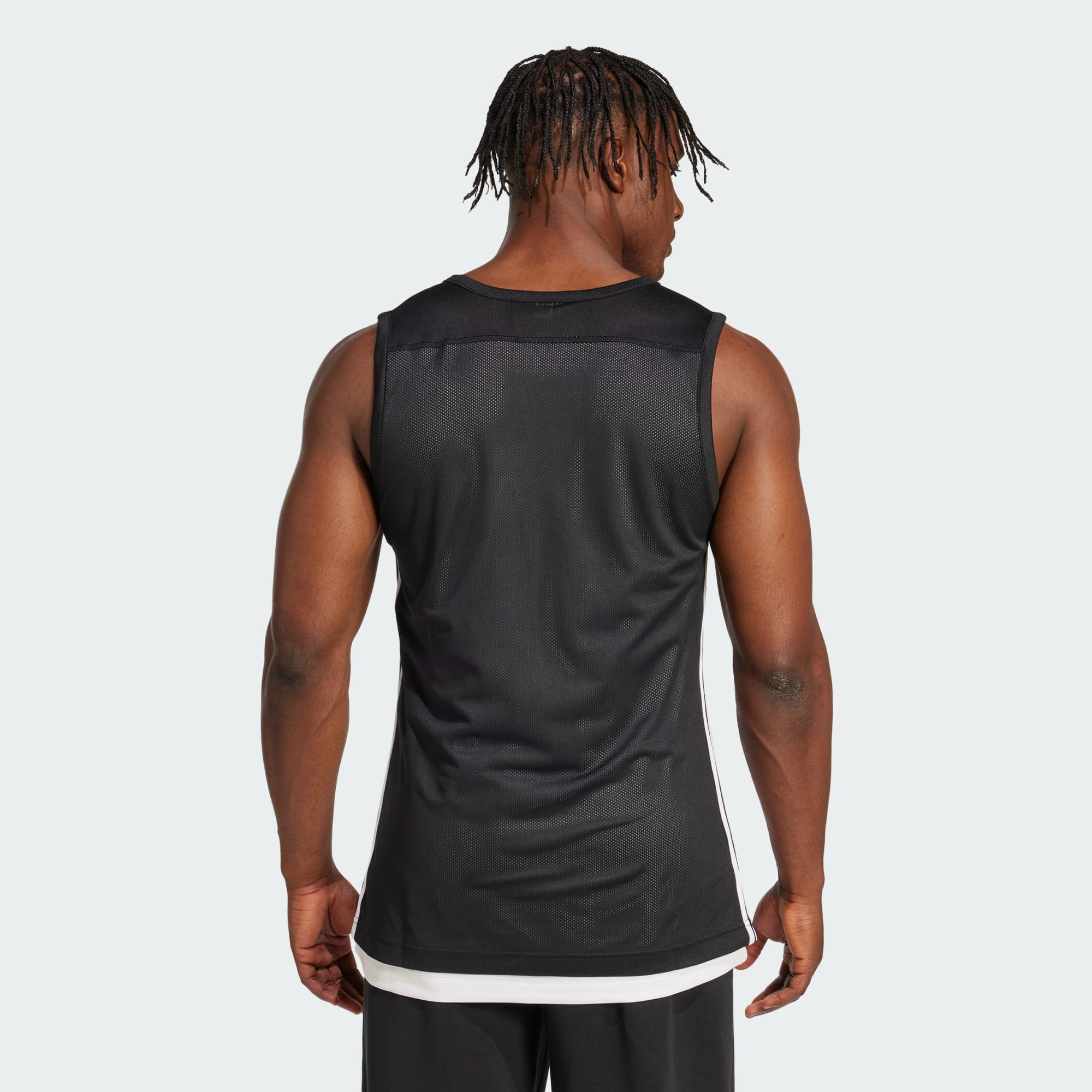 Ga in het veelzijdige comfort van dit basketbalshirt in de aanval. De ene kant van het dubbelzijdige model is gemaakt van mesh met contrasterende 3-Stripes, en de andere kant bestaat uit robuuste dubbelgebreide stof. Het voert frisse lucht aan bij elk balbezit en de vochtafvoerende stof verbetert de ventilatie.