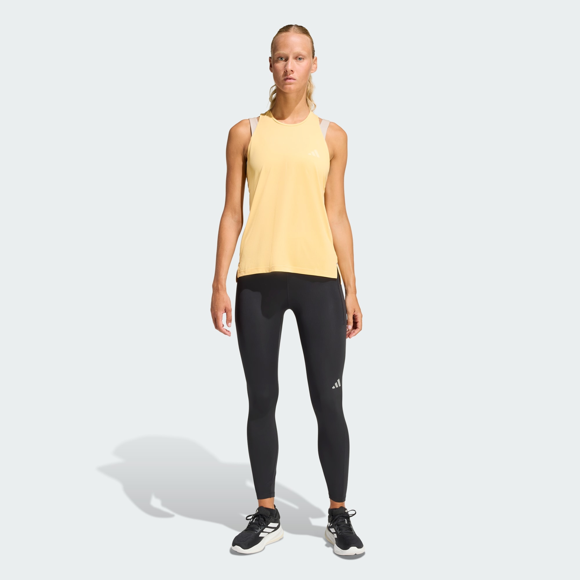 Een hardlooptanktop met Climacool om je stap na stap koel en droog te houden.