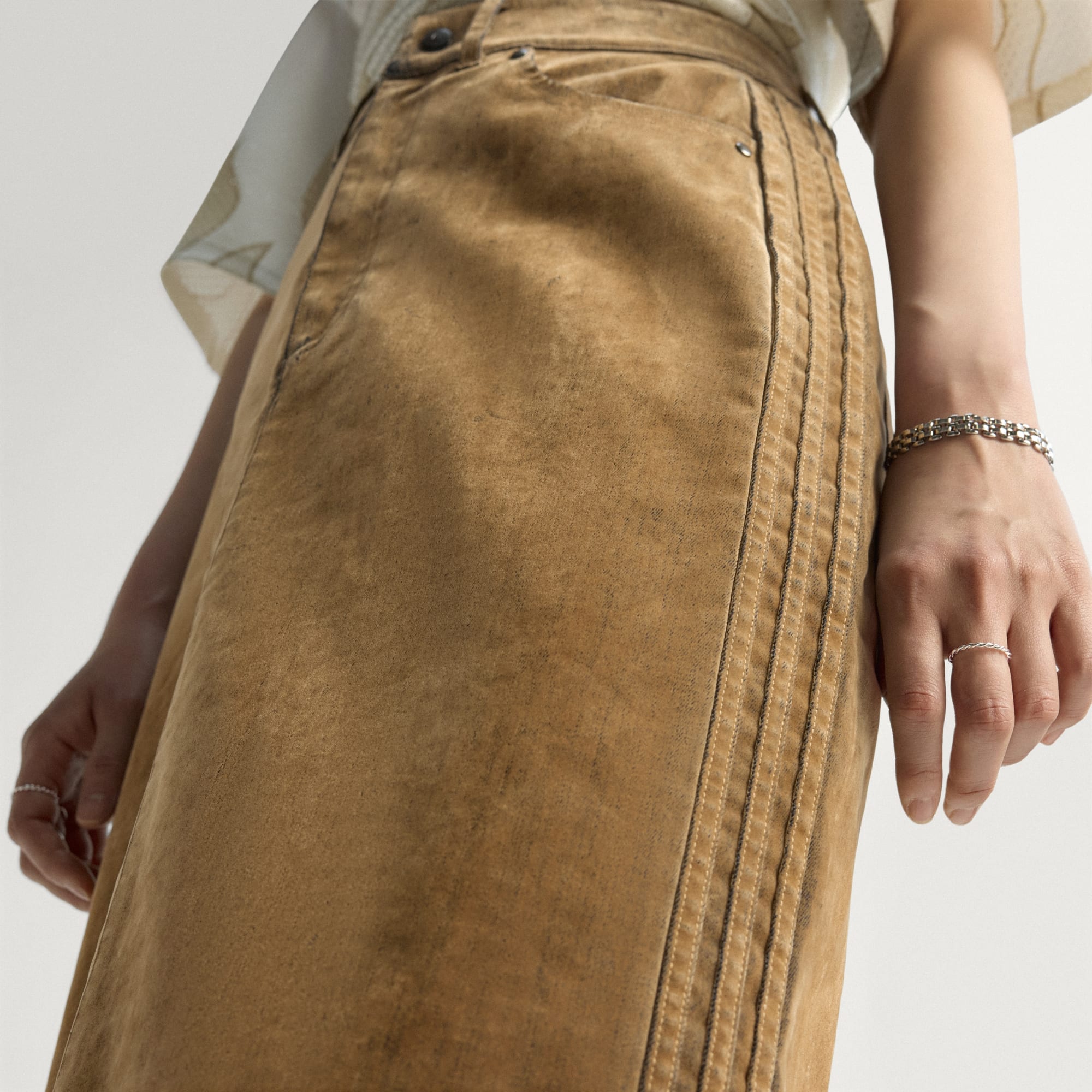 Een lange rok van zachte, geborstelde keperstof.
