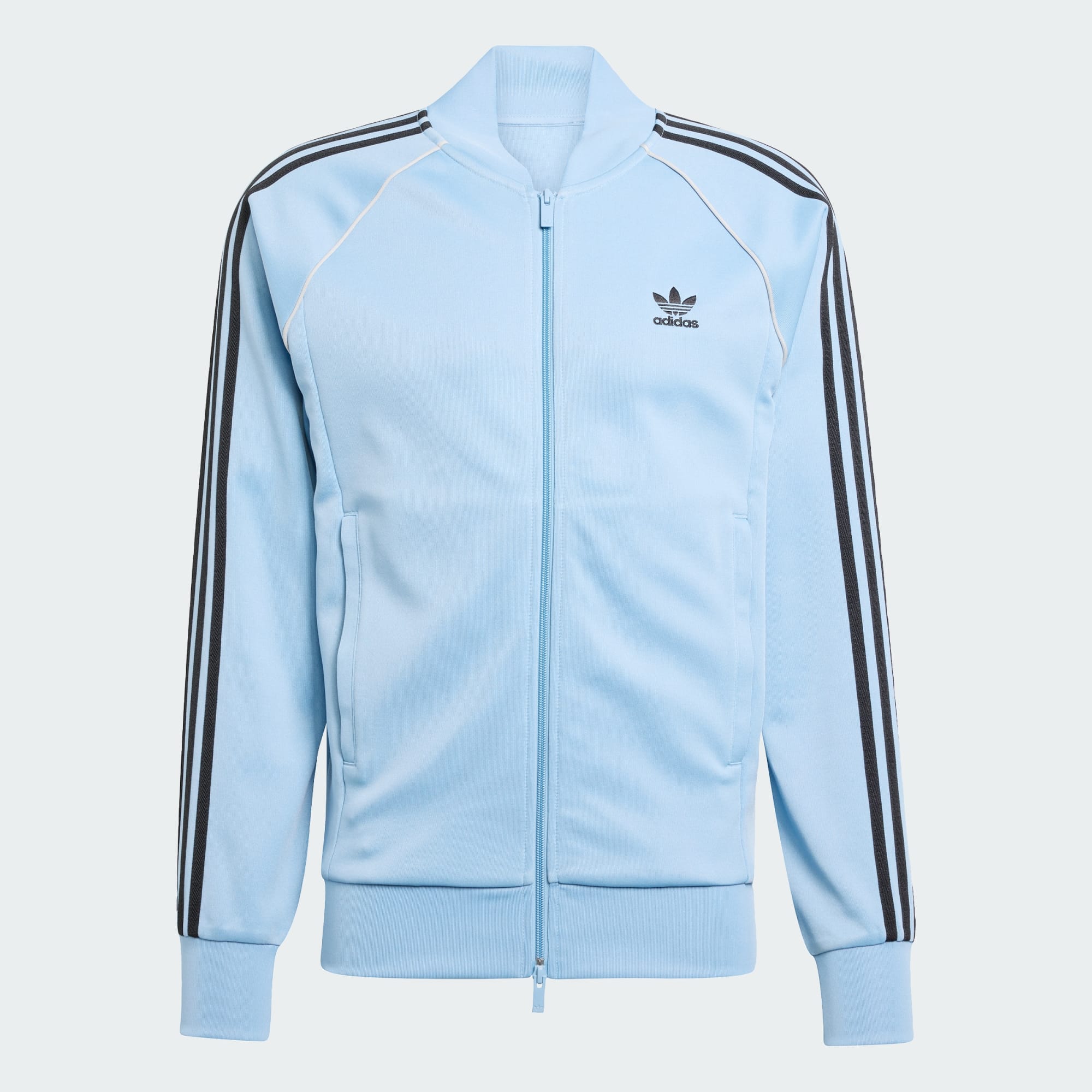 Iedereen heeft een goed trainingsjack nodig. Hier is 't jouwe. Deze adidas must-have van zacht interlock blijft trouw aan het design uit het archief dat ter inspiratie diende. Een geborduurd Trefoil-logo en 3-Stripes eren klassieke stijl, terwijl de geribbelde zoom en boorden de pasvorm precies op de juiste plek houden. Door de lange ritssluiting trek je 't makkelijk ergens over aan voor warmte, maar je kunt 't ook gewoon open laten hangen om je favoriete T-shirt eronder te laten zien. Minimaal 70% van dit product bestaat uit een mix van gerecyclede en hernieuwbare materialen.