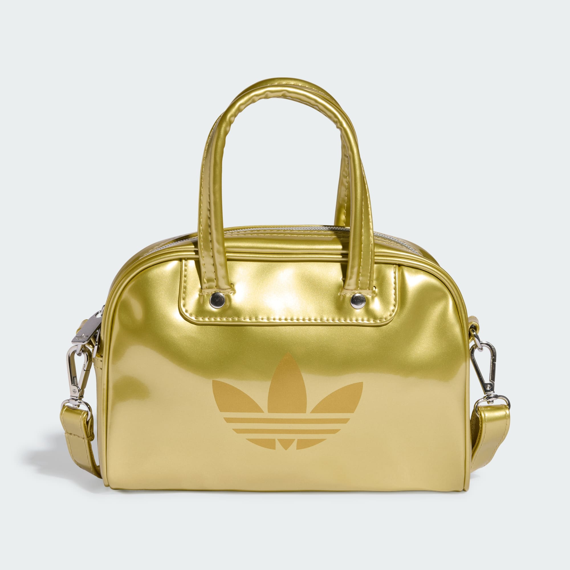Met deze Adicolor minibowlingtas van adidas, geïnspireerd op een stijl uit het archief, kun je al je benodigdheden in retro stijl meenemen. Of je hem nu over je schouder draagt of bij de handvatten pakt, de glanzende lakafwerking en contrasterende details zorgen voor een stijlvol statement. Een verstelbare, afneembare schouderriem zorgt voor draagopties en metalen studs geven de tas een premium touch. De glanzende Trefoil maakt de look compleet.