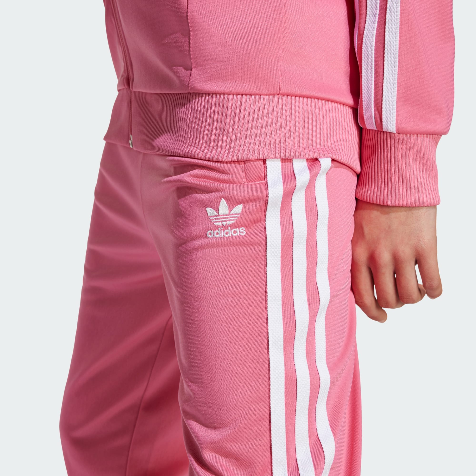 Een junior adidas SST broek die is gemaakt met gerecycled materiaal.
