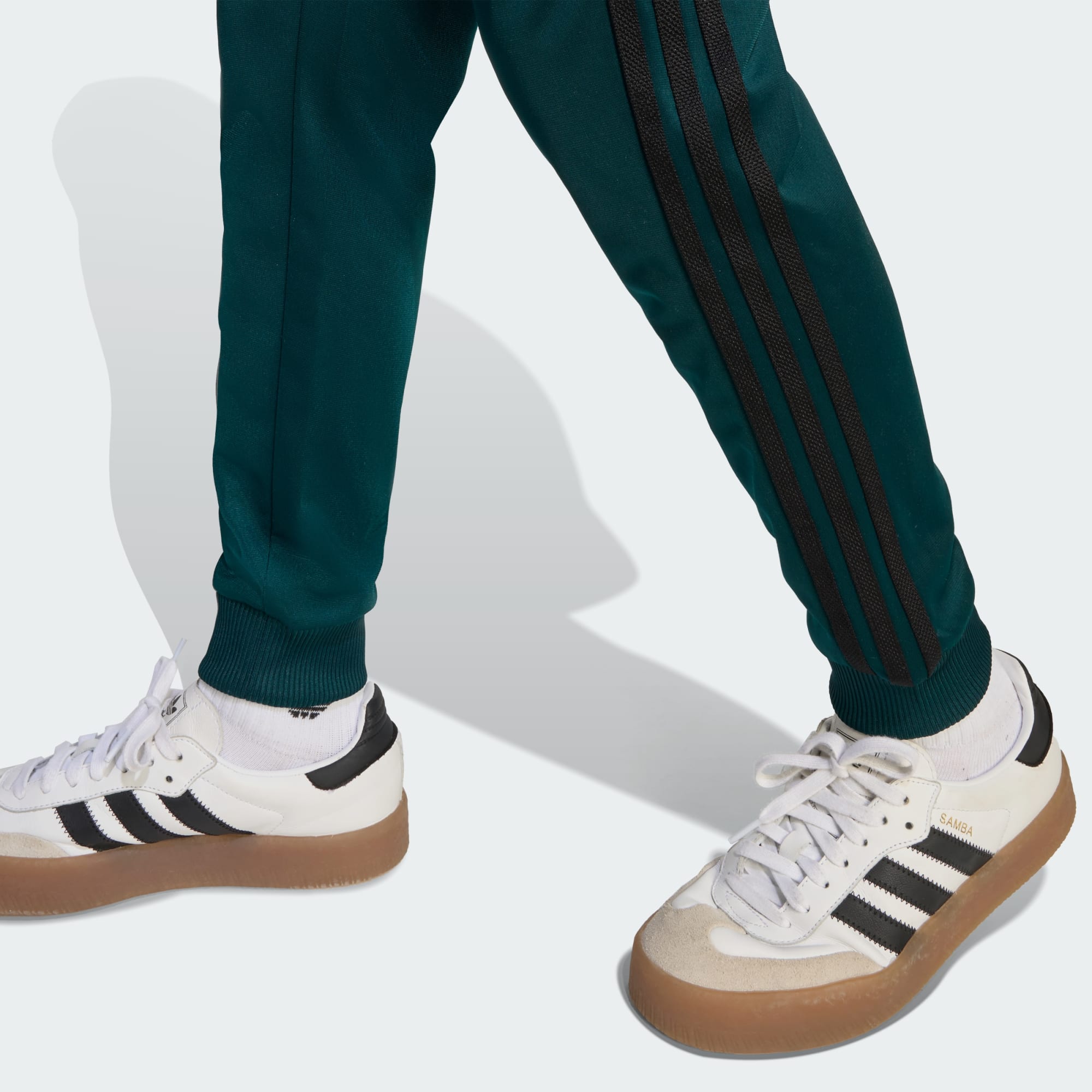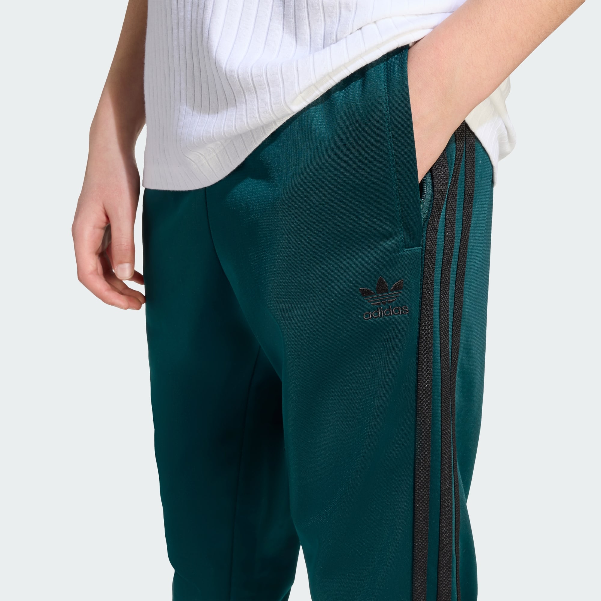 Een junior adidas SST broek die is gemaakt met gerecycled materiaal.