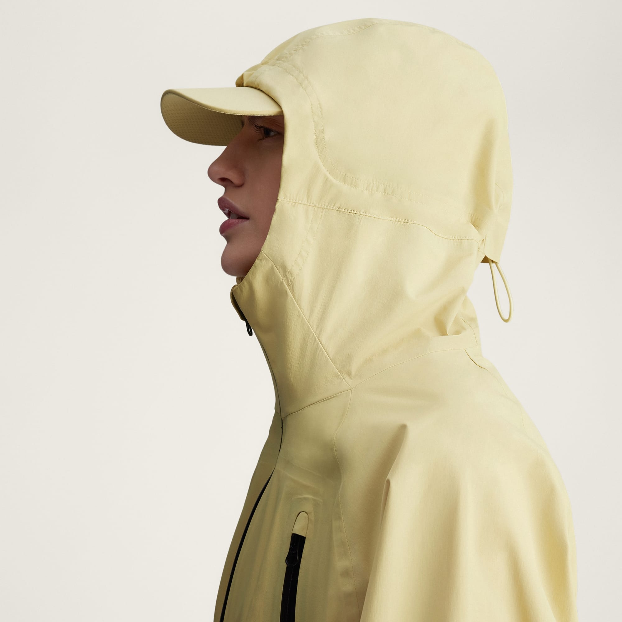 Voor een wat cleanere look of andere vibe berg je gewoon de capuchon op achter de rits in de kraag.