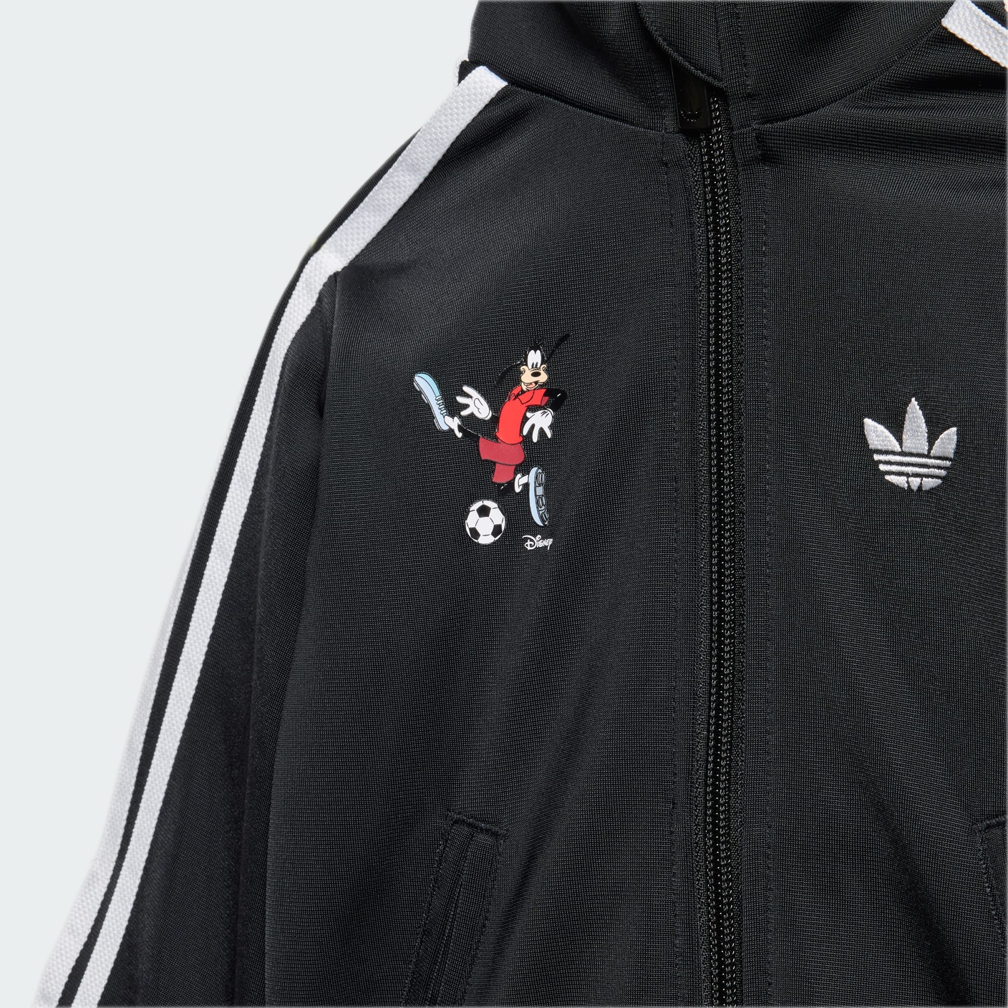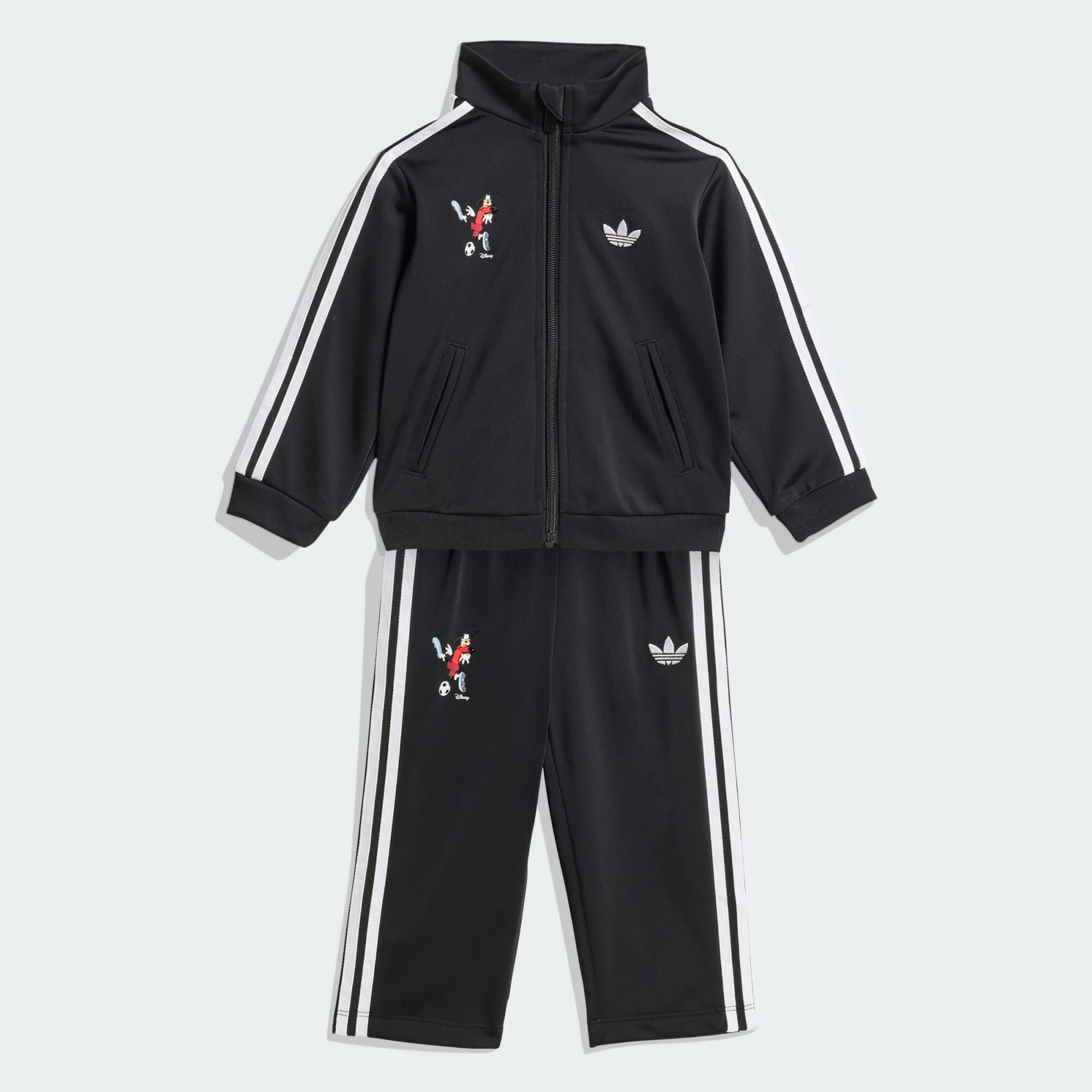 Het adidas Disney Firebird trainingspak verwijst op speelse wijze naar de wereld van sport en Disney-magie. Met een Disney-personage dat plezier heeft met sporten, is dit trainingspak geweldig voor kinderen die graag bewegen en spelen. Het trainingspak heeft een normale pasvorm voor zowel de boven- als onderkant, wat zorgt voor bewegingsgemak. De opstaande kraag voegt een vleugje stijl toe en de ritssluiting maakt aankleden een fluitje van een cent. Van speeltijd tot casual uitjes, deze set is ontworpen om jouw kinderen comfortabel en stijlvol te houden. Dit trainingspak maakt deel uit van de Originals, Basketball en Partnerships-collecties van adidas en moedigt kinderen aan om sport te ontdekken en met vertrouwen te spelen. Het is ontworpen om zowel actieve momenten als fantasierijke avonturen aan te sporen.