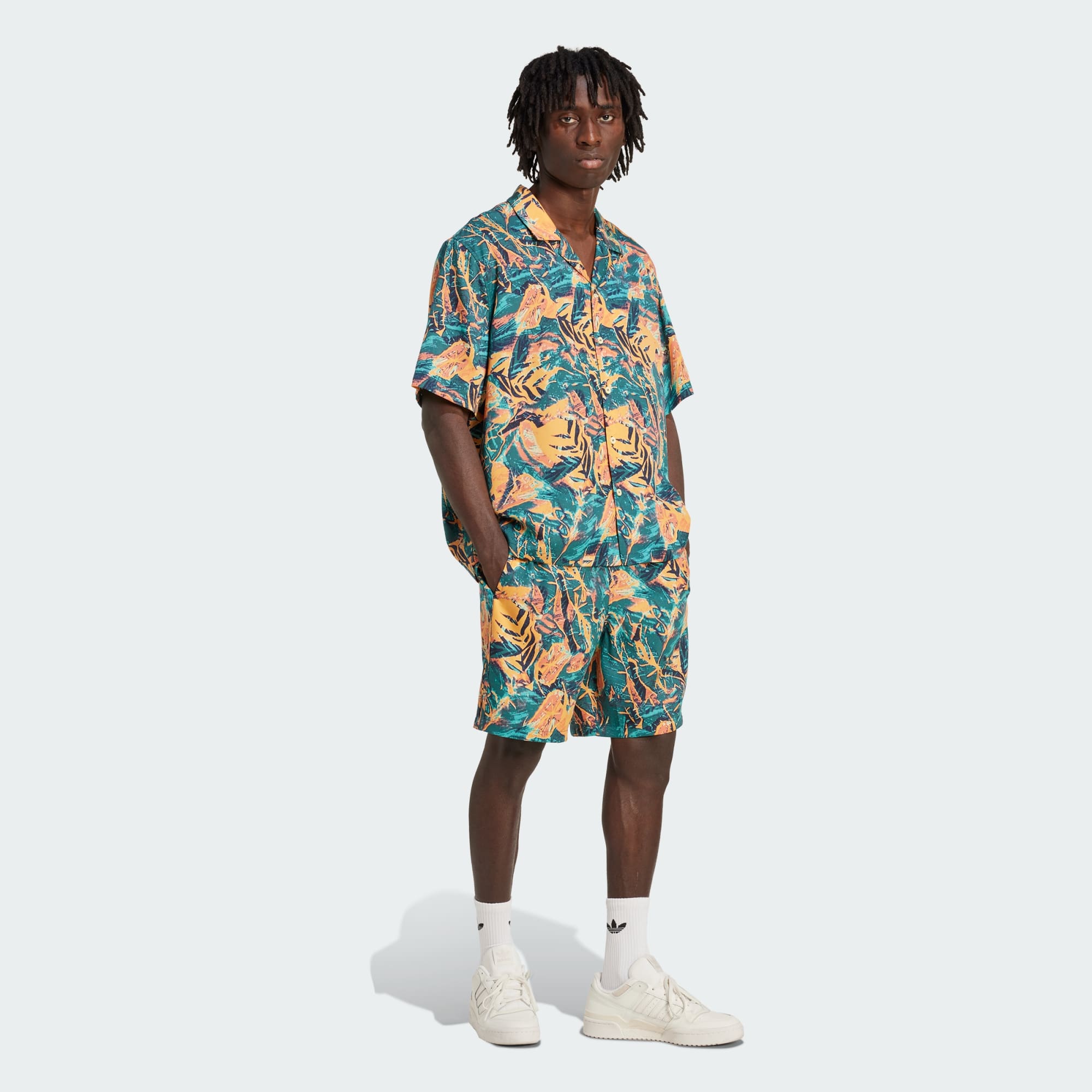 Een camouflage van bloemen creëert een energieke vibe op deze adidas Originals short. Het rechte silhouet schittert met wervelende kleuren die zijn geïnspireerd op het archief. Door de ritszakken aan de zijkanten blijft alles op z'n plek en altijd binnen handbereik als je in beweging bent.