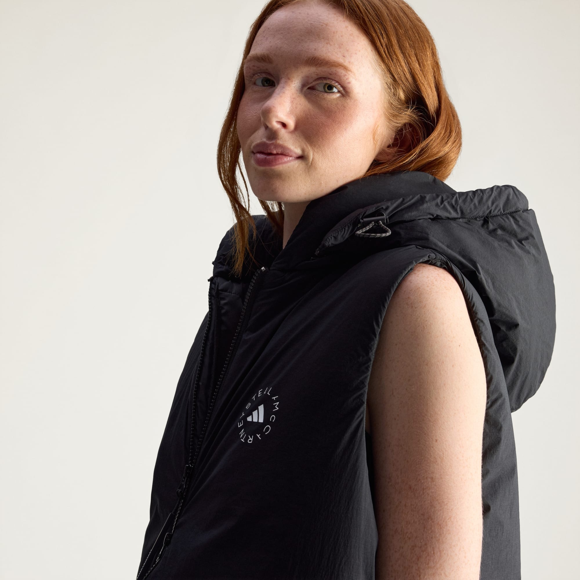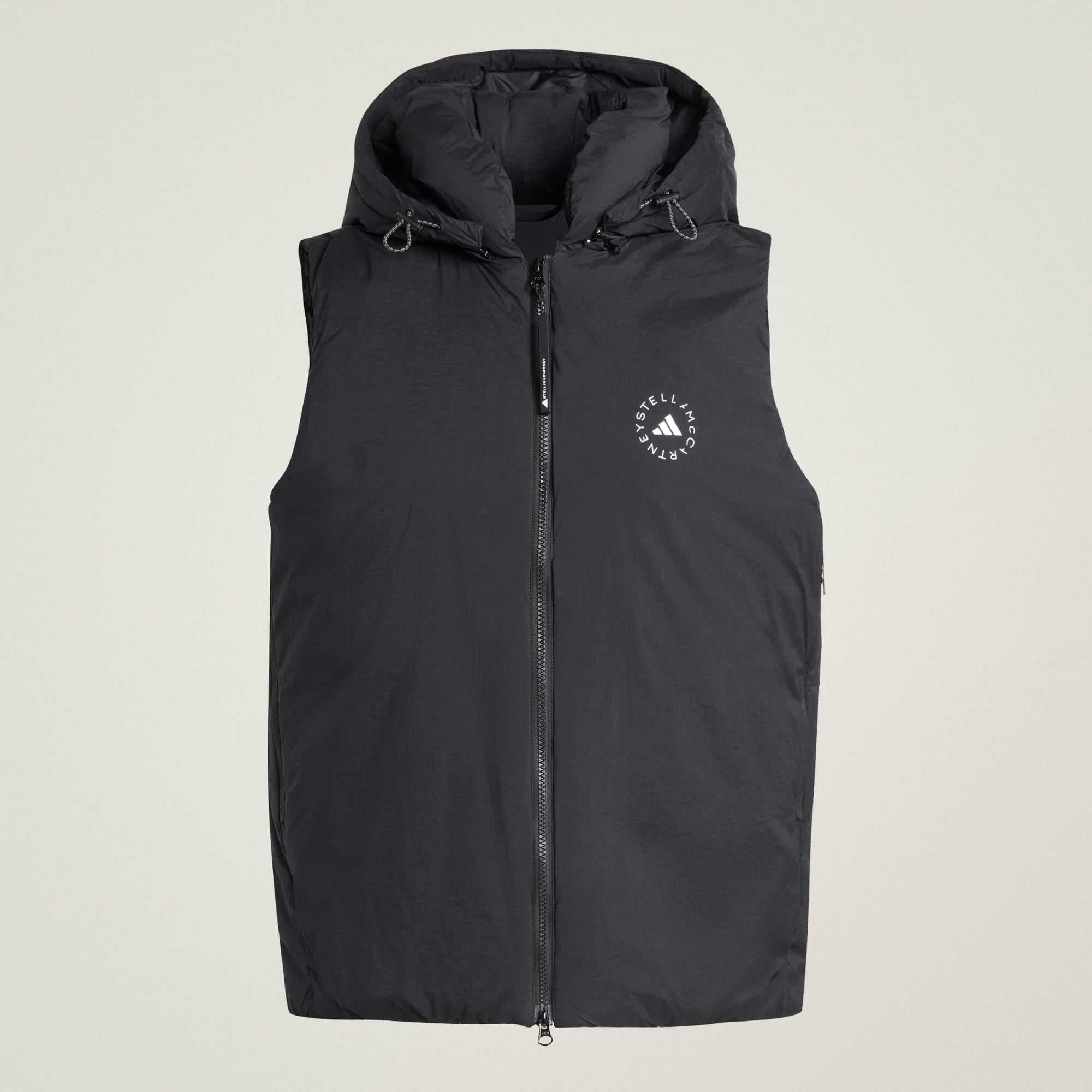 Als het weer om extra warmte vraagt, is deze adidas by Stella McCartney bodywarmer er klaar voor. Het is gewatteerd voor lichtgewicht isolatie die jou comfortabel houdt zonder bulk. Je kunt de capuchon eraf halen afhankelijk van jouw behoeften qua warmte en styling. In de ritszakken kun je je sleutels en lippenbalsem opbergen als je op pad gaat voor een winterse wandeling.