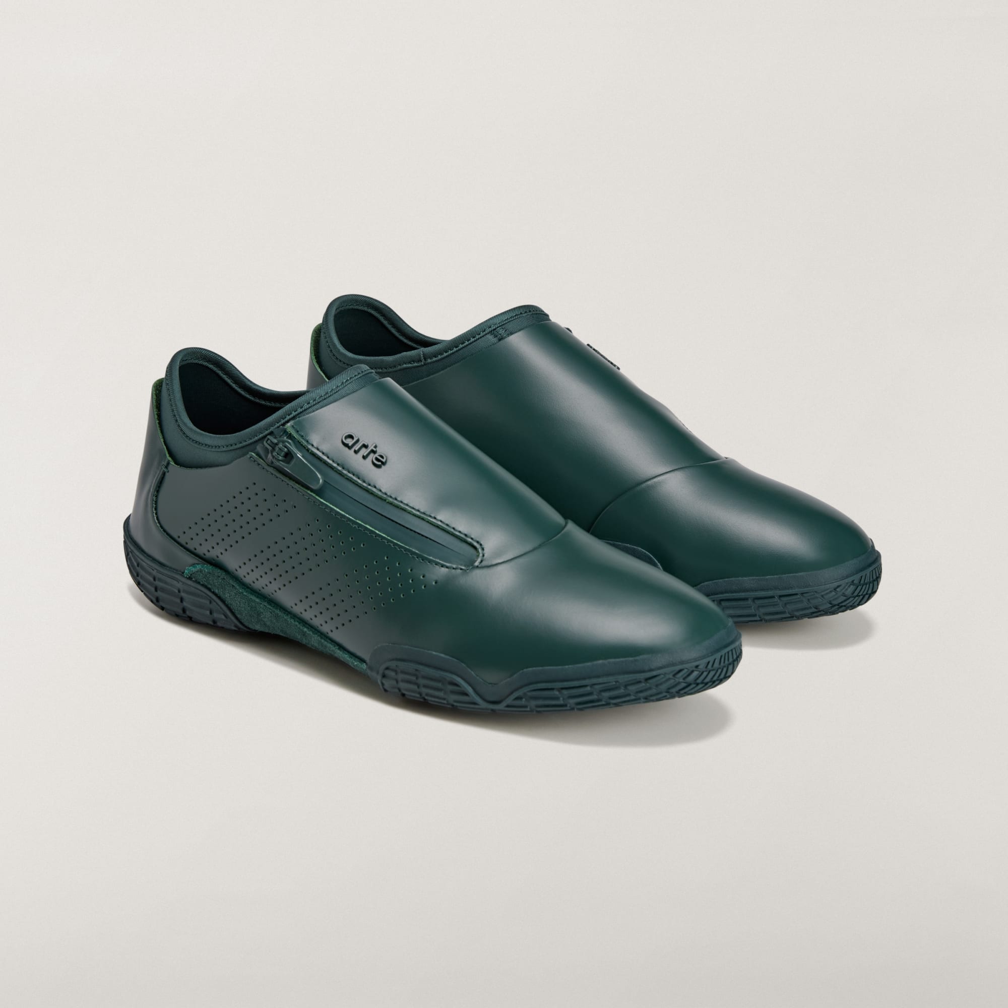 Leren sportschoenen met een rits aan de zijkant voor makkelijk aan- en uittrekken.