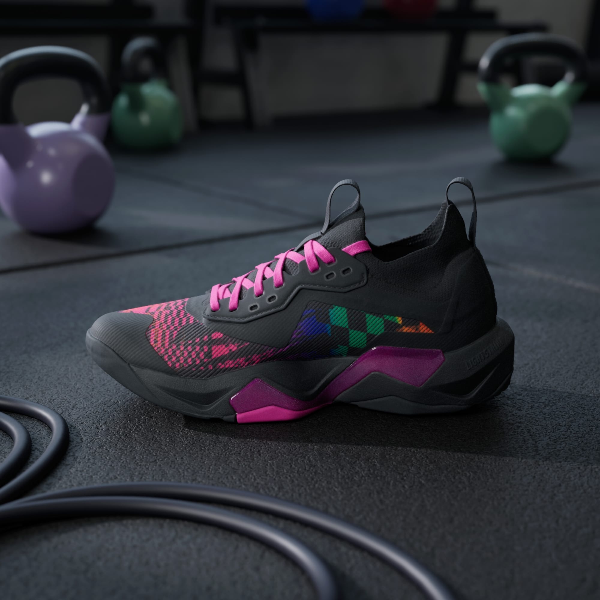 Deze adidas trainingsschoenen zijn ontworpen voor sporters die alles geven bij HIIT-workouts en houden jouw intensiteit gewoon bij. Een Lightstrike Pro-middenzool over de hele lengte voorziet jouw training van lichtgewicht, responsieve demping zodat je je grenzen kunt verleggen. De kleurrijke details zijn ontworpen in samenwerking met Jeremy Scott en geïnspireerd op de levendige energie van de housemuziek en clubcultuur van de jaren 90.