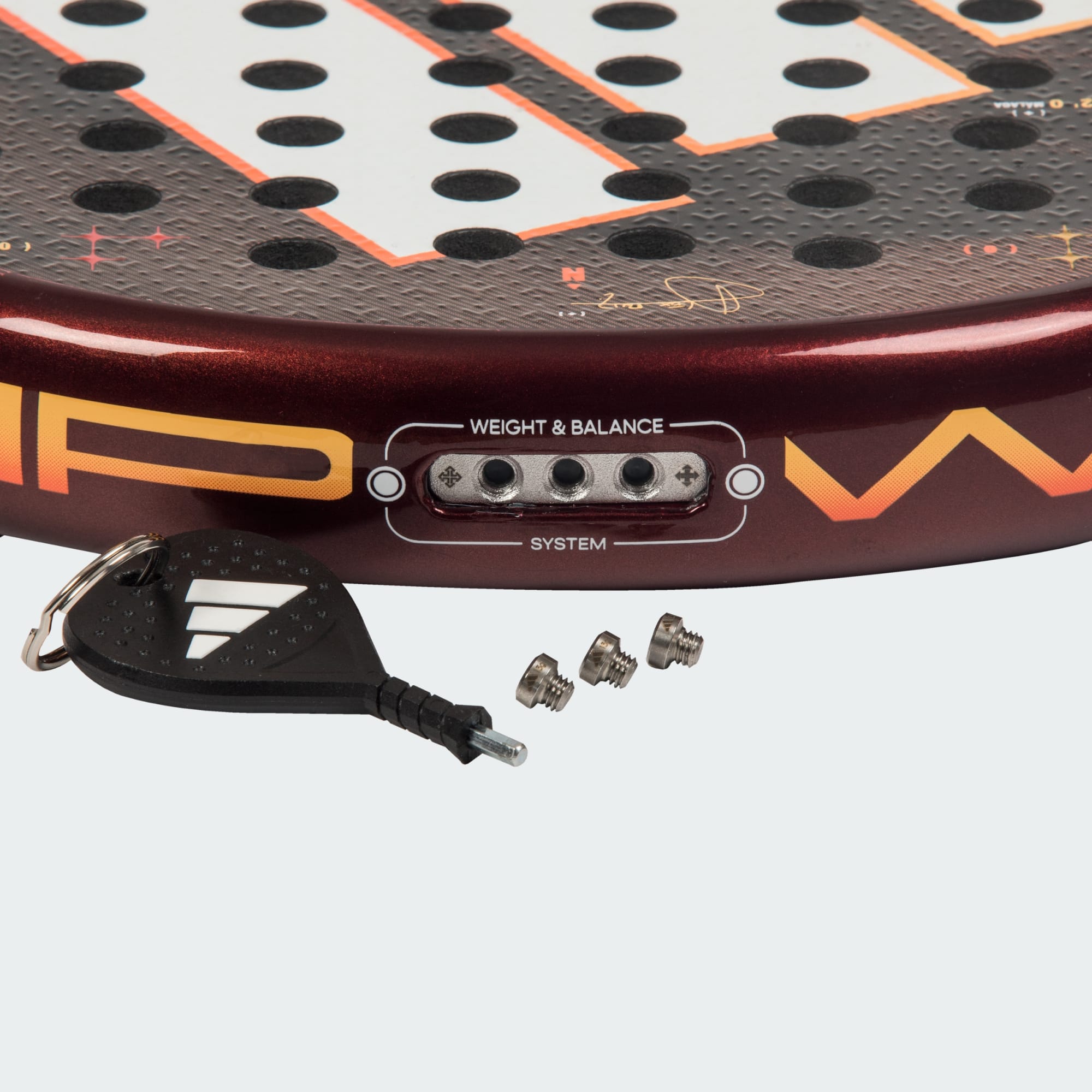 Een padelracket met aanpasbaar gewicht en balans voor krachtige slagen.