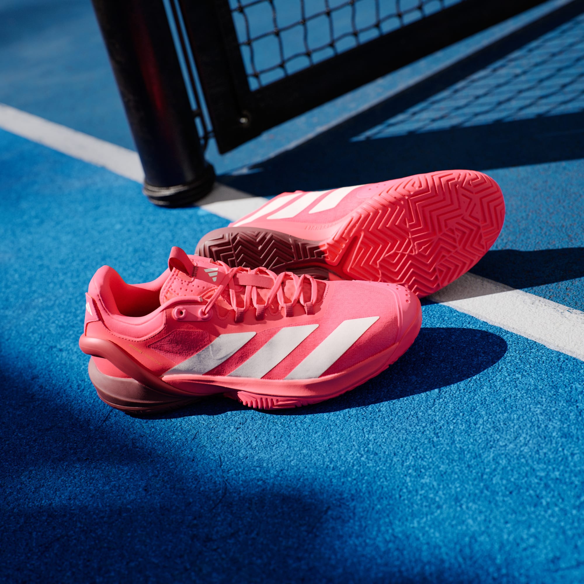 Geef je tempo een nieuwe dimensie. Deze adidas Adizero Cybersonic tennisschoen combineert een lichtgewicht bovenwerk van mesh met ENERGYRODS die zijn ontworpen om energieverlies bij de afzet te beperken. De Adiwear-loopzool is gemaakt voor stabiliteit op hardcourtbanen en de Lightstrike-middenzool houdt je dicht bij de grond, zodat je ogenblikkelijk op elke uitdaging kunt reageren. Dit product bestaat voor minstens 20% uit gerecyclede materialen. Door hergebruik van materialen die al eerder zijn gecreëerd, helpen we afval verminderen, en ook onze afhankelijkheid van beperkt beschikbare grondstoffen. Daarnaast verkleint het de voetafdruk van onze producten.