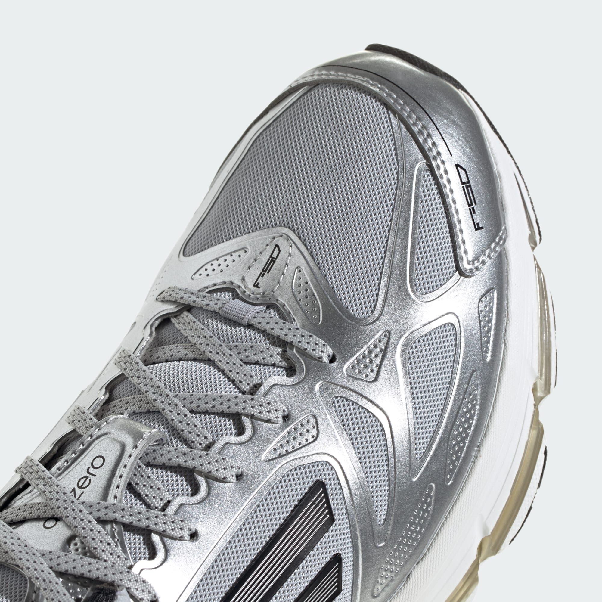 De Adizero F50 schoenen geven een knipoog naar het verleden met een moderne twist. Deze sportschoenen zijn geïnspireerd op het Adizero F50 Runner-model en een moderne versie van het iconische ontwerp met snelle strepen.