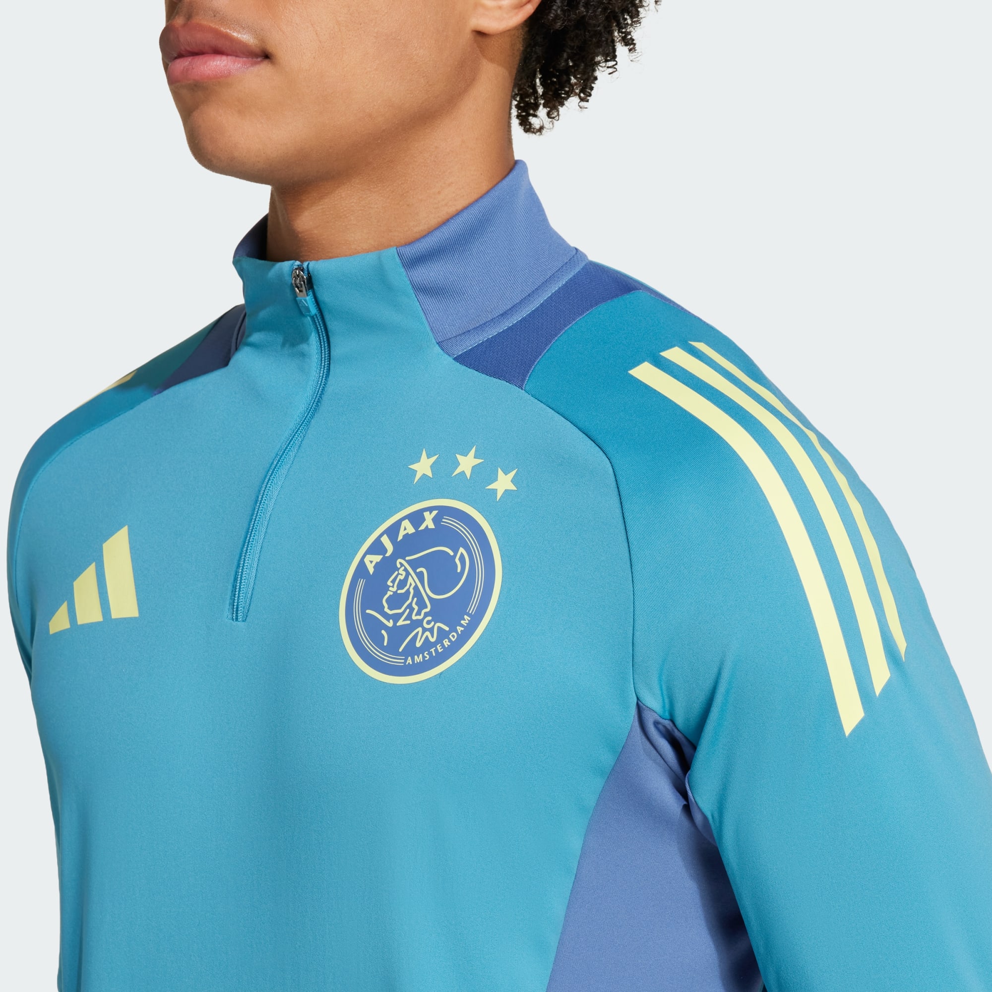 Een gestroomlijnde longsleeve voor de spelers van Ajax Amsterdam, gemaakt met gerecycled materiaal.