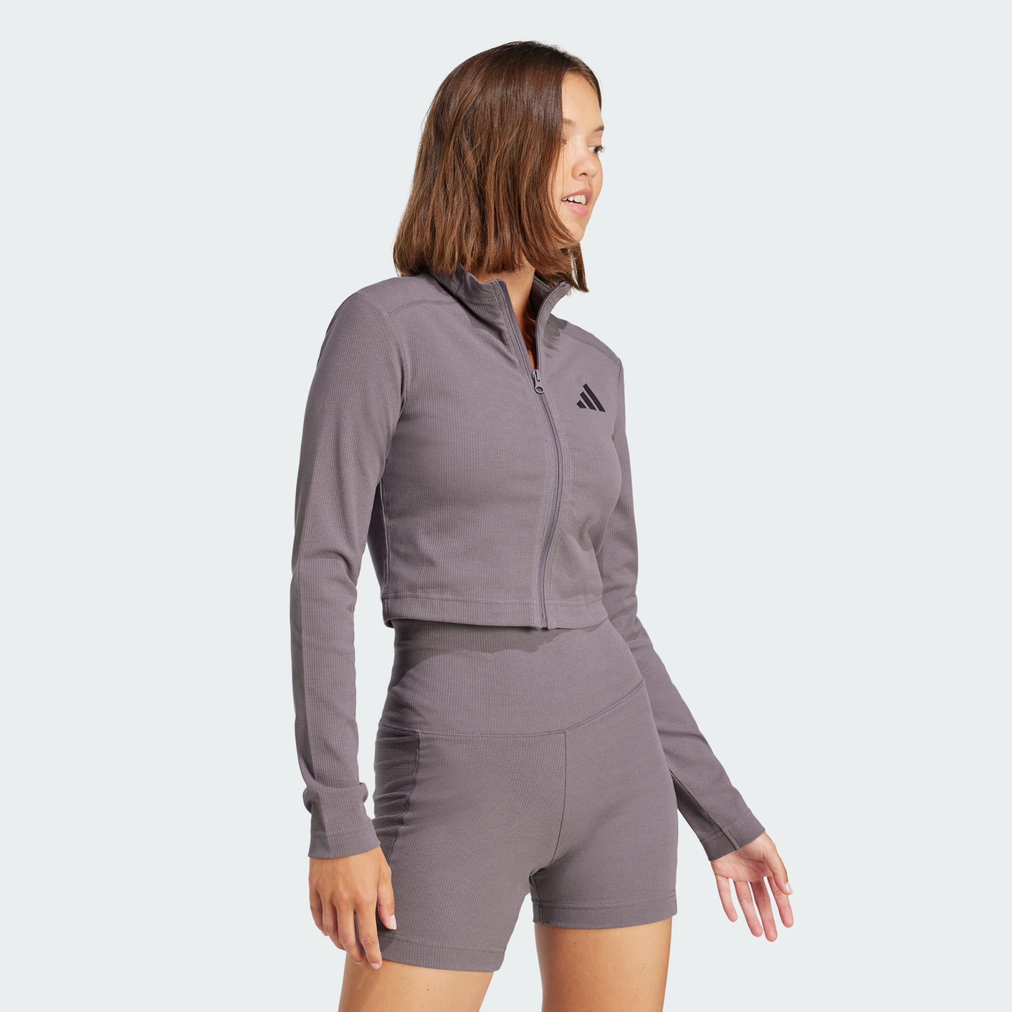 Een ritsjack van geribbelde stof, perfect voor al je bezigheden.