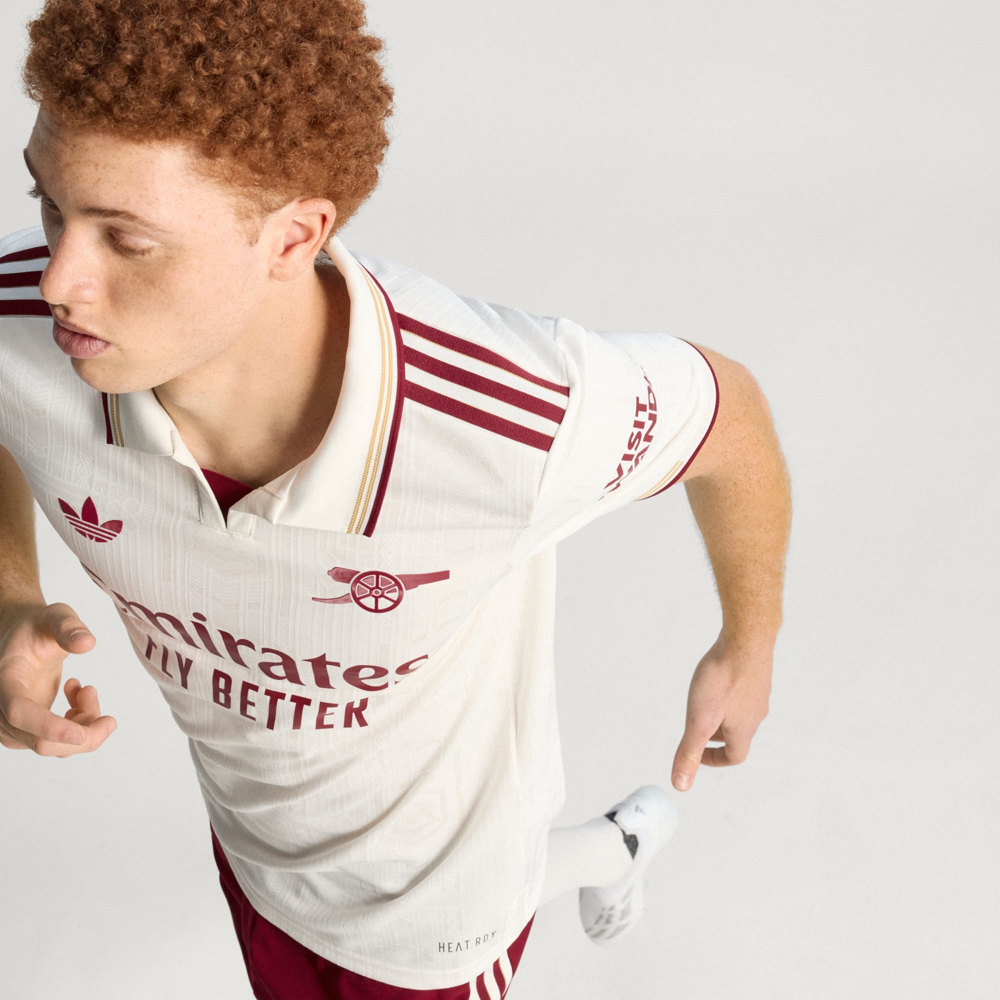 Matchday meets off-pitch fashion met het nieuwe derde tenue van Arsenal voor 25/26. Dit tenue combineert off-white tinten met rode accenten om extra op te vallen.