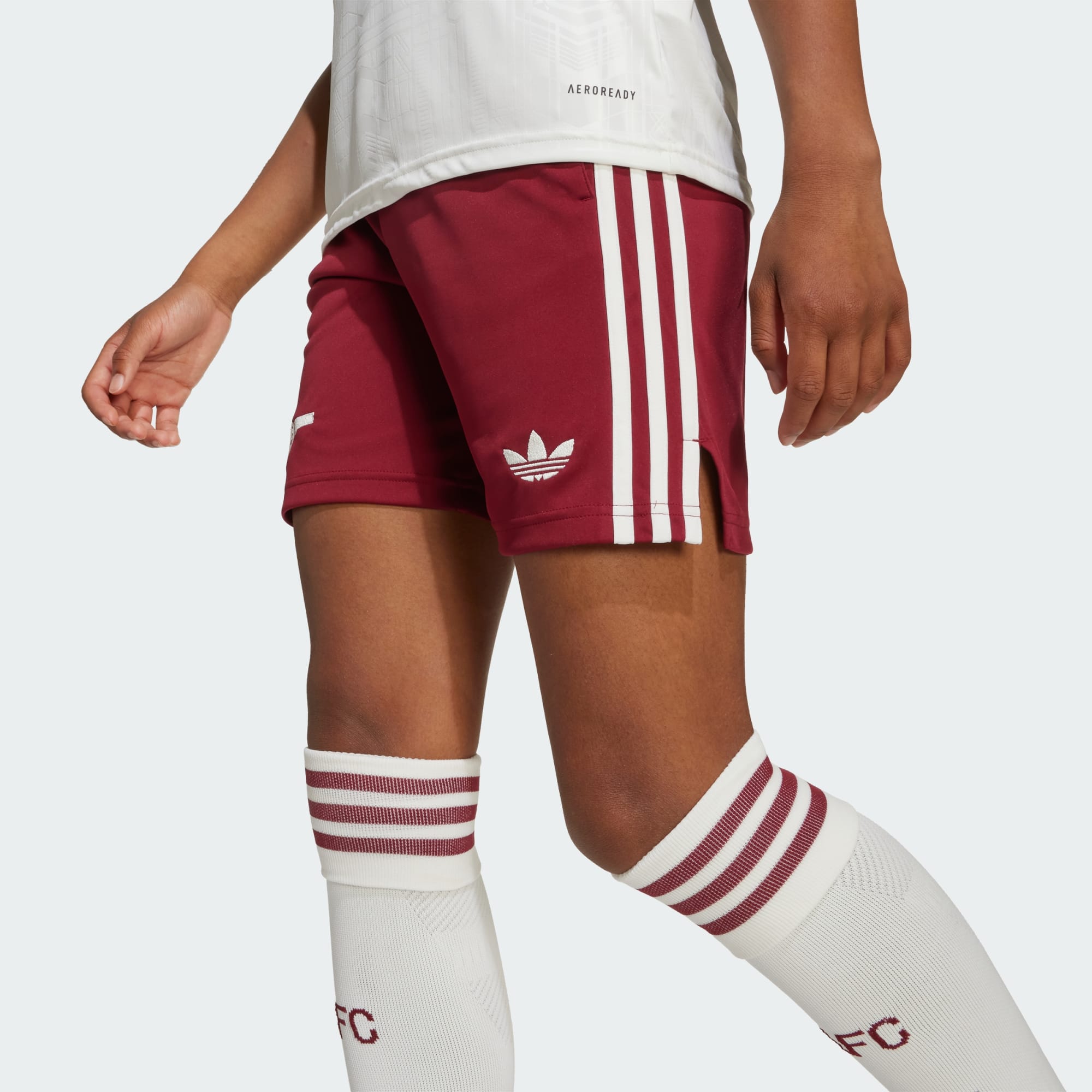 Eer de nalatenschap van Highbury met deze junior Arsenal derde short. Hij maakt deel uit van een tenue dat een eerbetoon is aan de voormalige thuisbasis van de club en is uitgevoerd in bordeauxrode kleuren die verwijzen naar de shirts die de spelers droegen tijdens hun laatste seizoen daar. De short is voorzien van vochtafvoerend AEROREADY voor comfort en afgewerkt met het iconische adidas Trefoil-logo en een klassiek kanonembleem.
