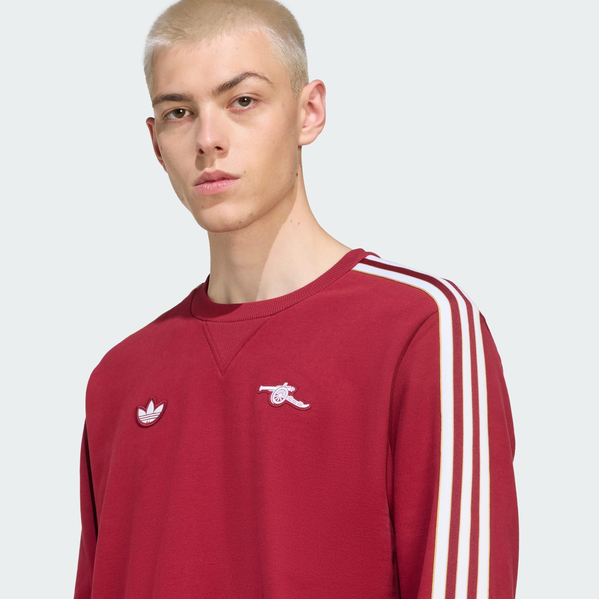 Met dit Arsenal sweatshirt van adidas stap je in de voetbalcultuur van de jaren 80. Laat je liefde voor de club zien in casual comfort. Door de zachte French terry badstof houdt dit sweatshirt de warmte binnen via een geribbelde kraag en boorden. Naast die klassieke Trefoil op de borst, laat je met een kanonembleem je loyaliteit schitteren op wedstrijddagen.