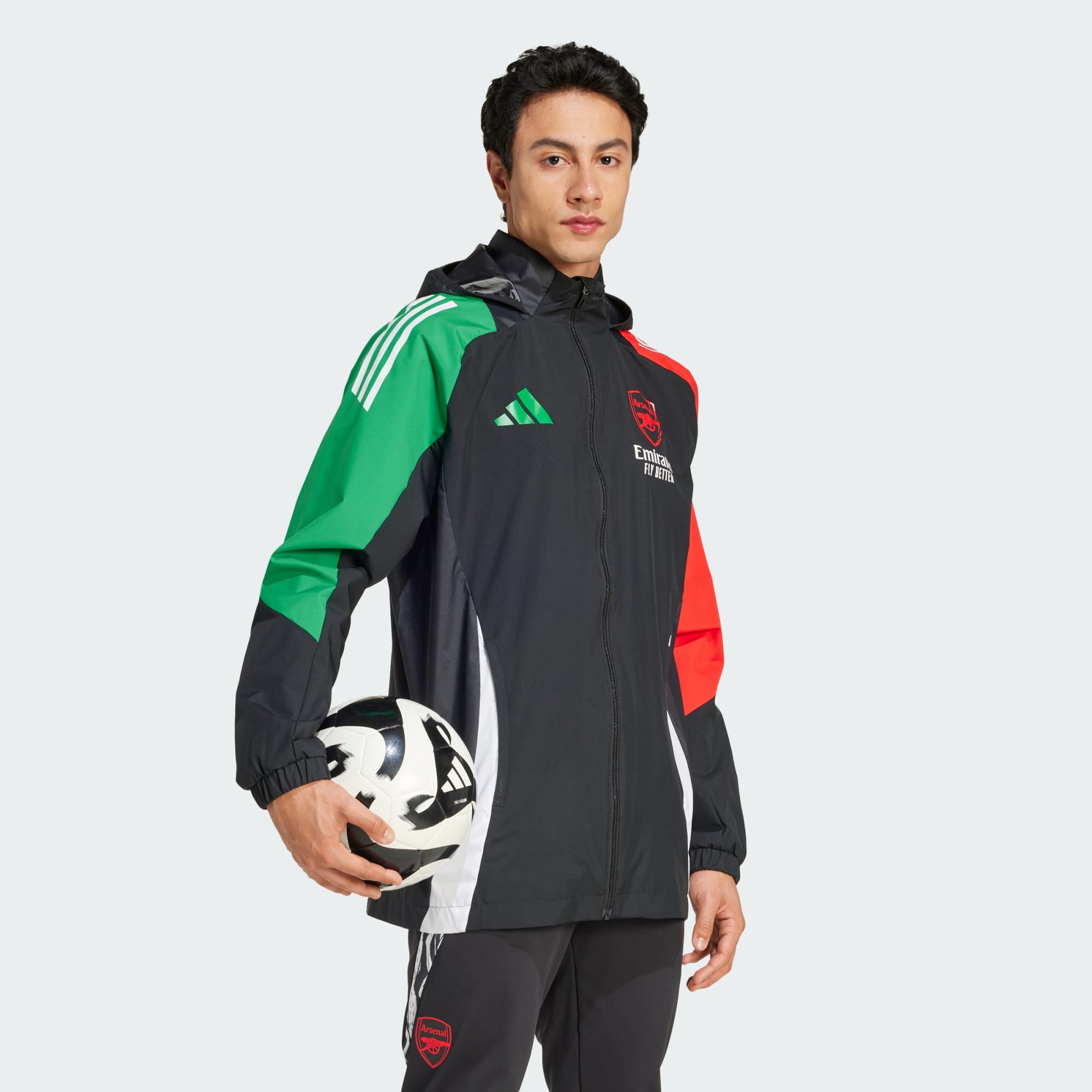 Je hoeft niet bang te zijn voor de elementen als je dit Arsenal jack draagt tijdens de training. Het komt uit een adidas collectie die is geïnspireerd op de kleuren van hun uittenue, en is gemaakt van robuuste, waterafstotende platgeweven stof om je te helpen in alle omstandigheden meesterlijk te voetballen. Als het ergste voorbij is, berg je de capuchon op voor een gestroomlijnder gevoel. Dit product is gemaakt met ten minste 70% gerecyclede materialen. Door hergebruik van materialen die al eerder zijn gecreëerd, helpen we afval verminderen, en ook onze afhankelijkheid van beperkt beschikbare grondstoffen. Daarnaast verkleint het de voetafdruk van onze producten.
