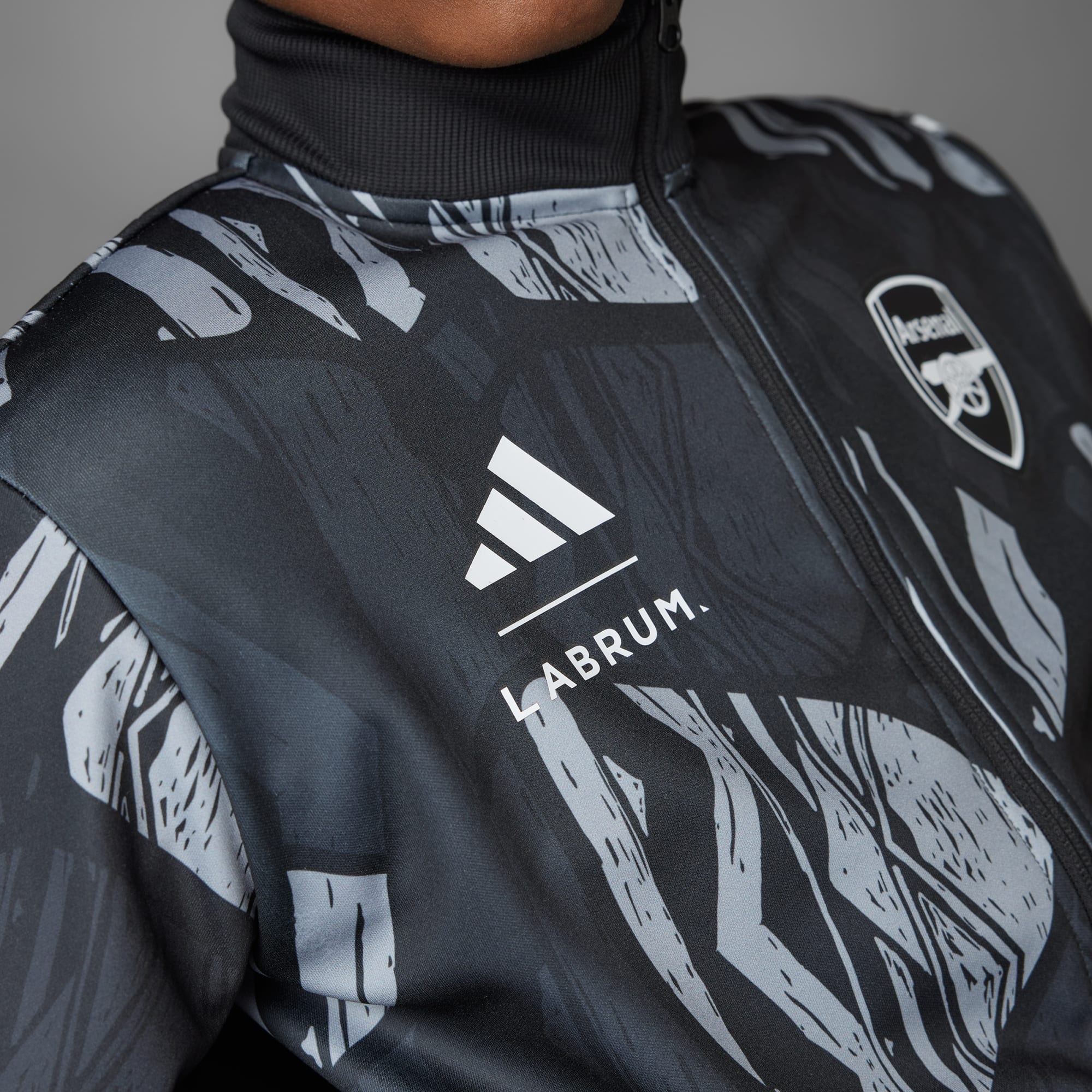 Dit in samenwerking met Labrum London gemaakte Arsenal trainingsjack trekt de aandacht.