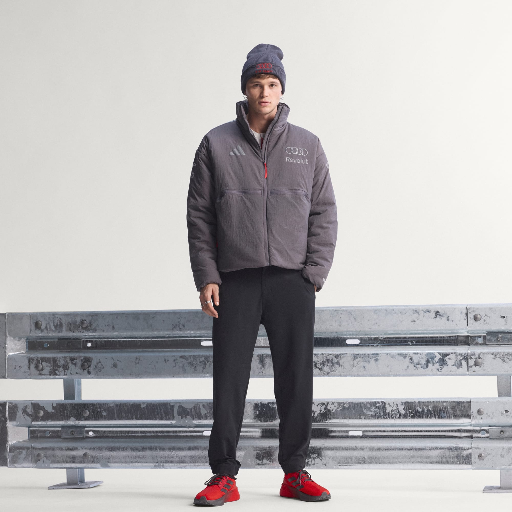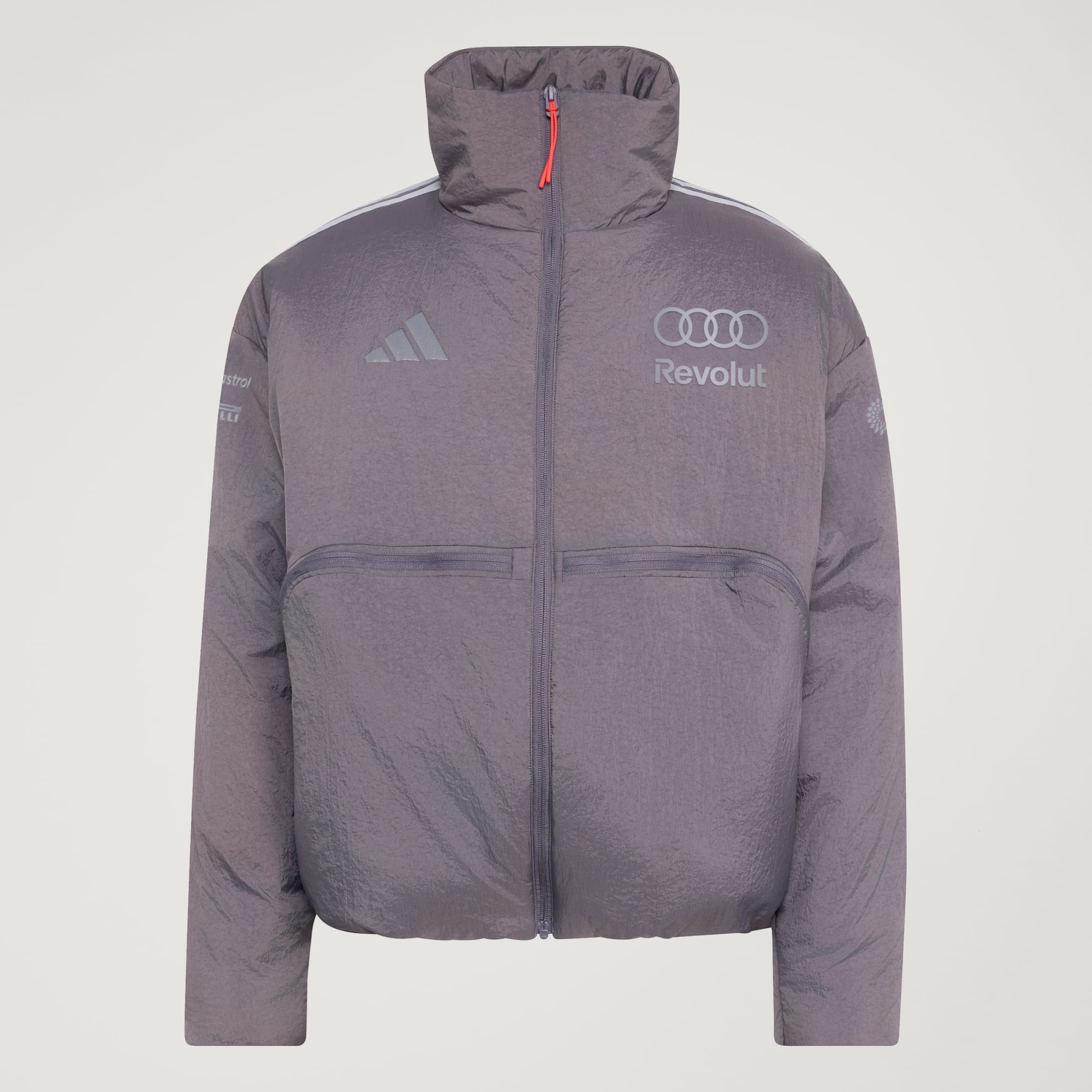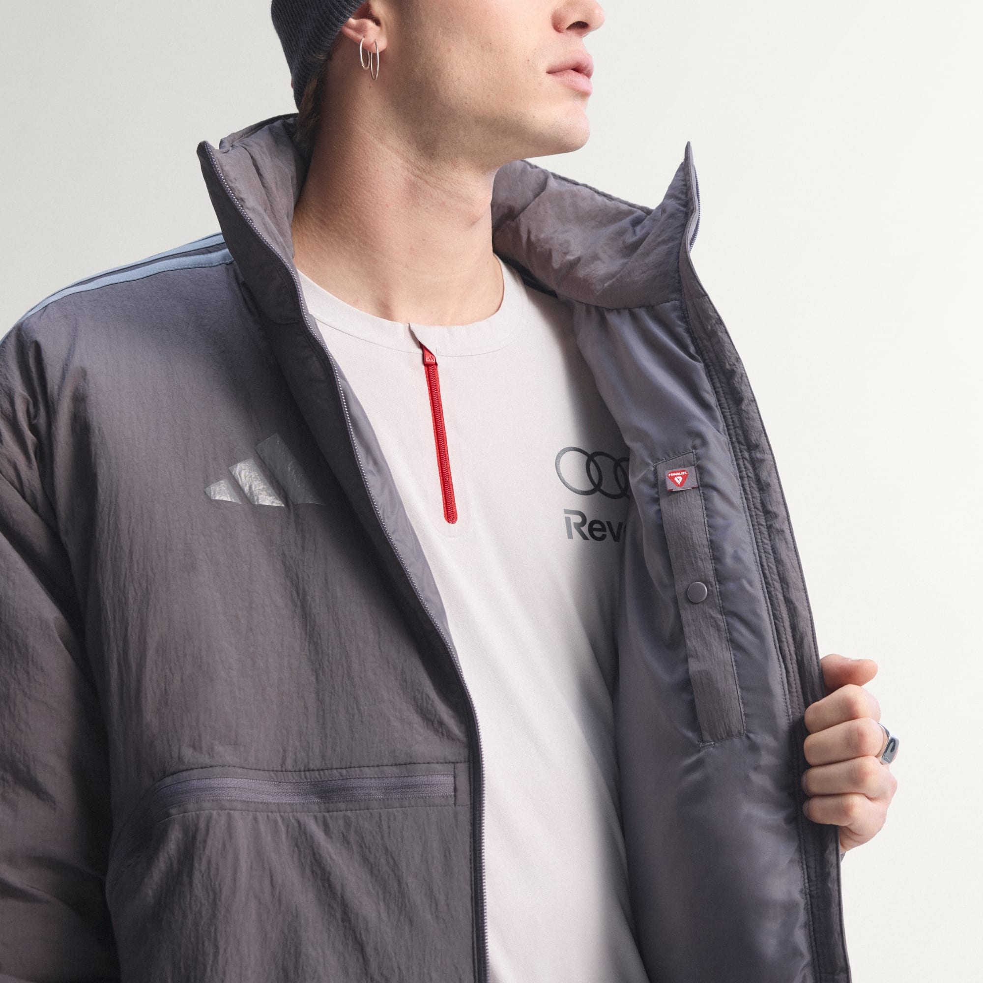 In de pitstraat leef je op het scherpst van de snede, en het gewatteerde Audi Revolut F1® Team Engineers and Marketing jack is gemaakt om die intensiteit te evenaren. De platgeweven constructie maakt 't robuust en biedt een strakke afwerking voor de balans tussen functie en stijl die zo kenmerkend is voor precieze prestaties. adidas Primaloft-technologie levert isolatie die het lichaam warm helpt te blijven zonder extra gewicht. Een lange kraag en de zoom met trekkoord bieden extra bedekking als de omstandigheden veranderen, waardoor het jack beschermt zonder daar bewegingsvrijheid voor op te offeren. Praktische eigenschappen, zoals twee voorzakken met rits, helpen spullen veilig opgeborgen te houden, terwijl de Climawarm-technologie warmte vasthoudt en vocht afvoert voor warm, droog en gefocust presteren. Audi Revolut F1® Team-merkdetails op de linkermouw verankeren het design in motorsport door professionele elementen te verbinden met doordeweekse kleding. Laat je liefde voor F1 zien in dit praktische, functionele jack.