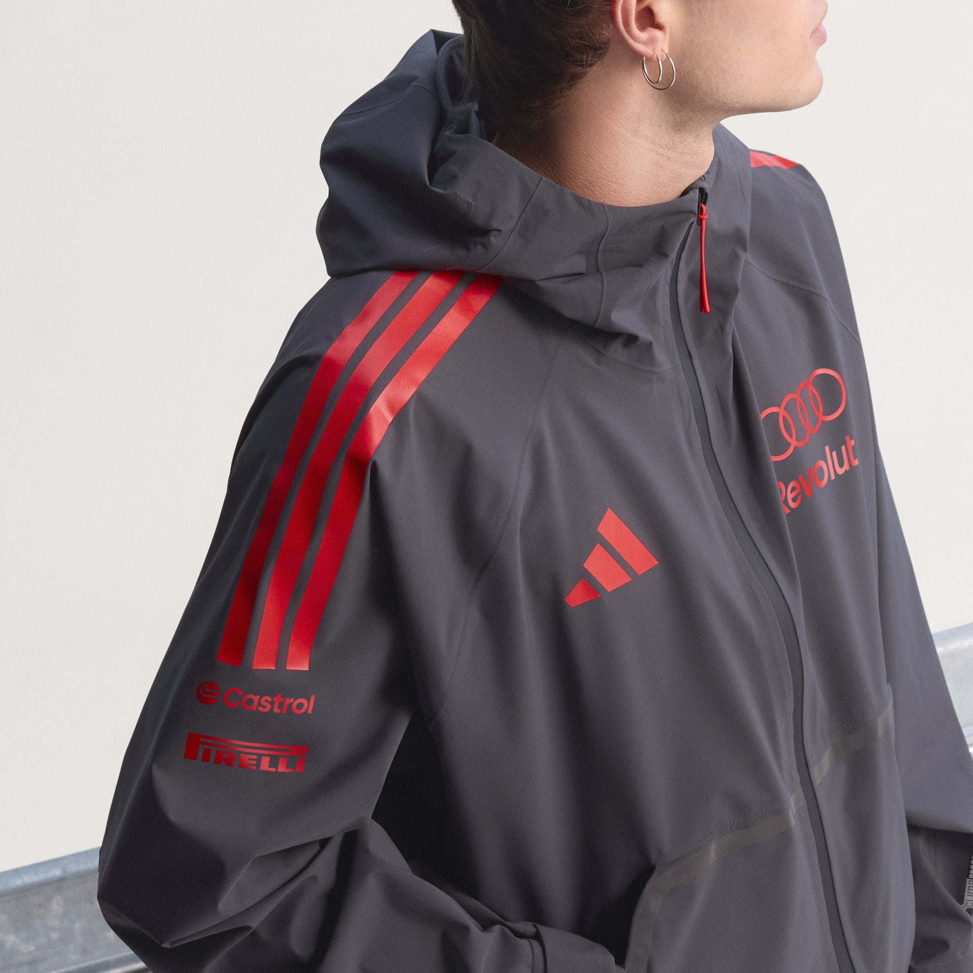 Vier de wereld van motorsport met het Audi Revolut F1® Team monteursregenjack, gemaakt voor wie het leven in de hoogste versnelling leeft. Dit jack houdt je niet alleen droog, maar helpt je ook de spirit van het Audi Revolut F1®-team te omarmen. Het regenjack is versierd met het motief van de vier ringen als verwijzing naar de precisie en prestaties die synoniem zijn aan het merk. Met praktische eigenschappen zoals ritszakken en verstelbare boorden is het even functioneel als stijlvol. Geïntegreerde Climaproof-technologie sluit het weer buiten en helpt zweet te ontsnappen voor droog, comfortabel en ongehinderd presteren. De waterdichte, ademende stof helpt je te beschermen tegen de elementen, terwijl de in twee richtingen verstelbare capuchon voor meer bedekking zorgt. Of je nu op het circuit bent of door de stad navigeert, dit jack is je go-to voor prestaties en stijl. Omarm de sensatie van motorsport en laat elk moment tellen.