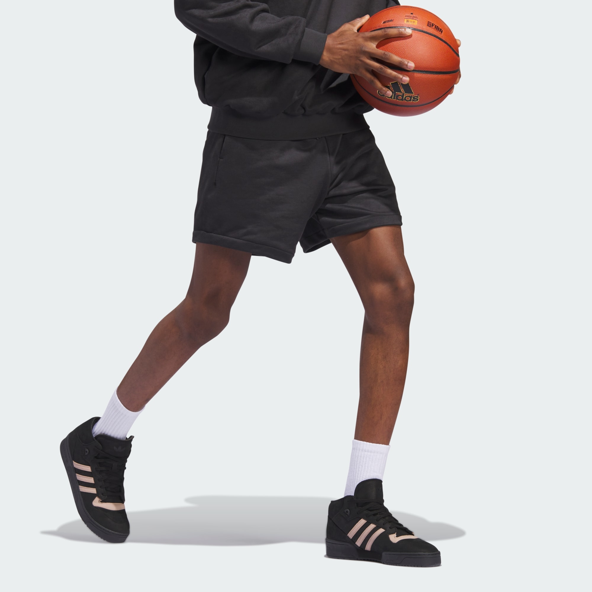 Dit nieuwe hoofdstuk van adidas Basketball verkent vorm, functie en kleur. Een zorgvuldig samengestelde collectie, gemaakt om te voldoen aan de behoeften van de moderne sporter. Deze basketbalshort is gemaakt van premium sweaterstof die aanvoelt als suède, en heeft ritszakken in de zijnaden en een geribbelde, met trekkoord verstelbare broeksband.