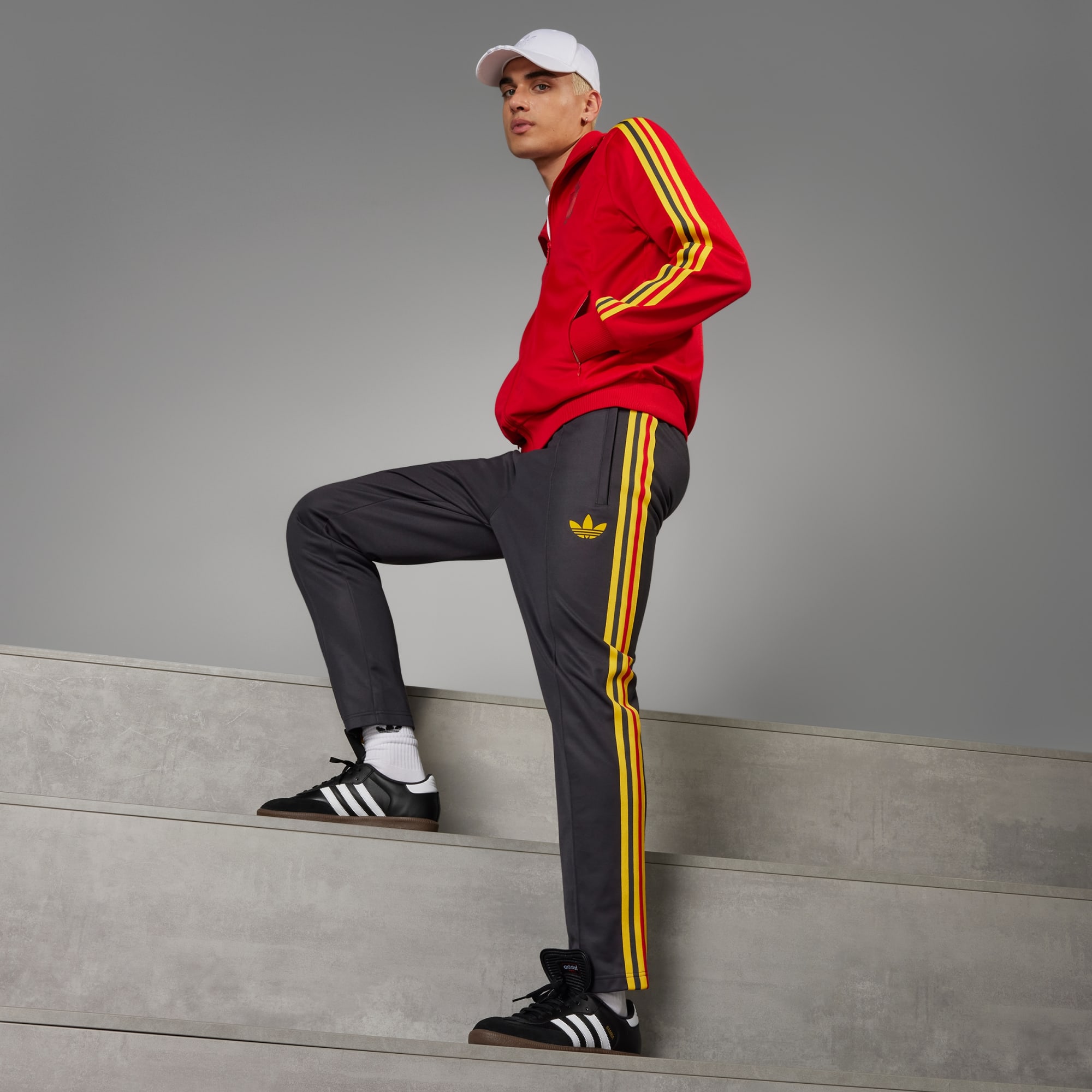 Sluit je aan bij de legendarische overwinningen van de Belgische Rode Duivels met een adidas stijl uit het archief. De België Beckenbauer trainingsbroek mixt historie met een eigentijdse look waarin de passie van toegewijde voetbalfans doorklinkt. Het strakke model van perzikzachte materialen staat garant voor comfort en een luxe look, waar je ook naartoe gaat. In de voorzakken met rits kun je al je onmisbare spullen kwijt, en de omboorde achterzak biedt extra functionaliteit. Draag bij elke stap je teamtrots uit met het fraaie België-embleem in suèdeprint. Door voor gerecycled materiaal te kiezen, kunnen we materialen hergebruiken die al zijn gemaakt. Dit helpt zowel afval als onze afhankelijkheid van beperkt beschikbare grondstoffen te verminderen.