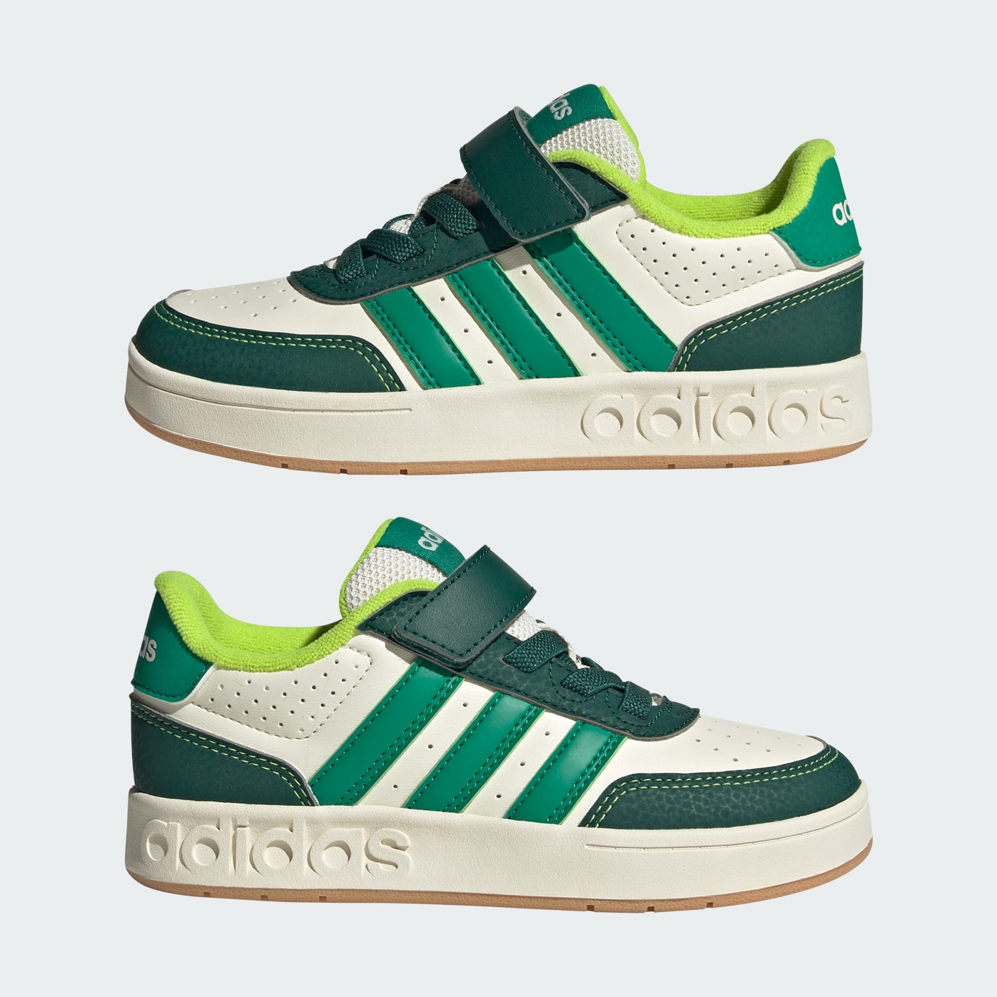 Kinderen zullen het geweldig vinden om deze stijlvolle sneakers aan te trekken, of ze nu naar school gaan of buitenspelen. De adidas Breakbase schoenen combineren een glad synthetisch bovenwerk met een robuuste rubberen loopzool die gemaakt is voor alle soorten avontuur. Met de klittenbandsluiting zijn ze gemakkelijk vast te maken zodra kinderen ze aantrekken, waardoor ze nooit hoeven te wachten tot het tijd is voor plezier.