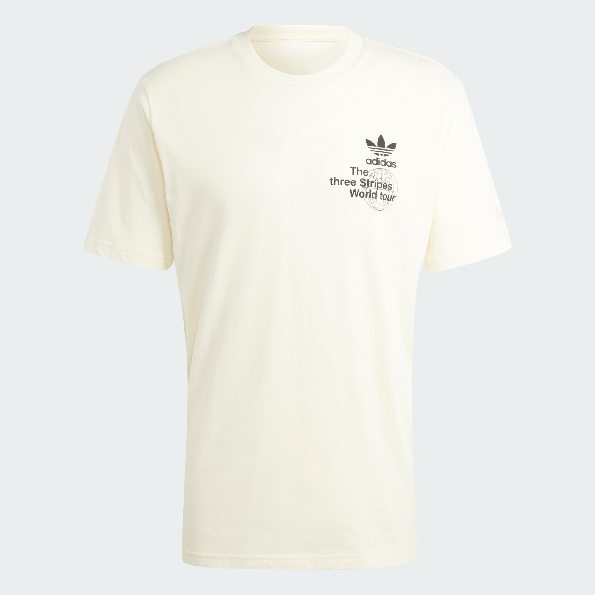 Op dit opvallende T-shirt schittert de wereldtour van de 3-Stripes. Het is gemaakt van zachte katoenen jersey voor een hele dag comfort en heeft een collage van grafische elementen op de rug. De geribbelde ronde hals houdt de vibe klassiek. Dit T-shirt is gemaakt om keer op keer te dragen, voor stijl die het adidas leven in vuur en vlam zet.