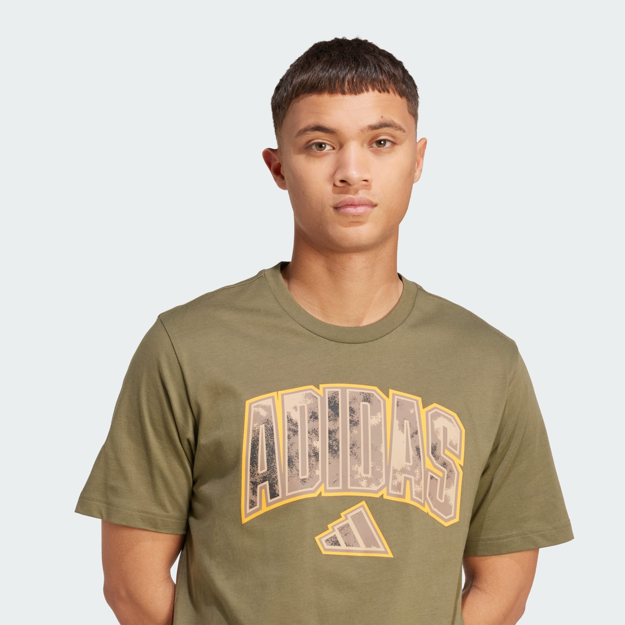 Geef je alledaagse stijl een vleugje camo met dit grafische T-shirt van adidas. Het is gemaakt van zachte katoenen enkele jersey die jou comfortabel houdt vanaf het moment dat je het aantrekt. Het op camouflage geïnspireerde scriptlogo op de borst maakt een stoer statement.