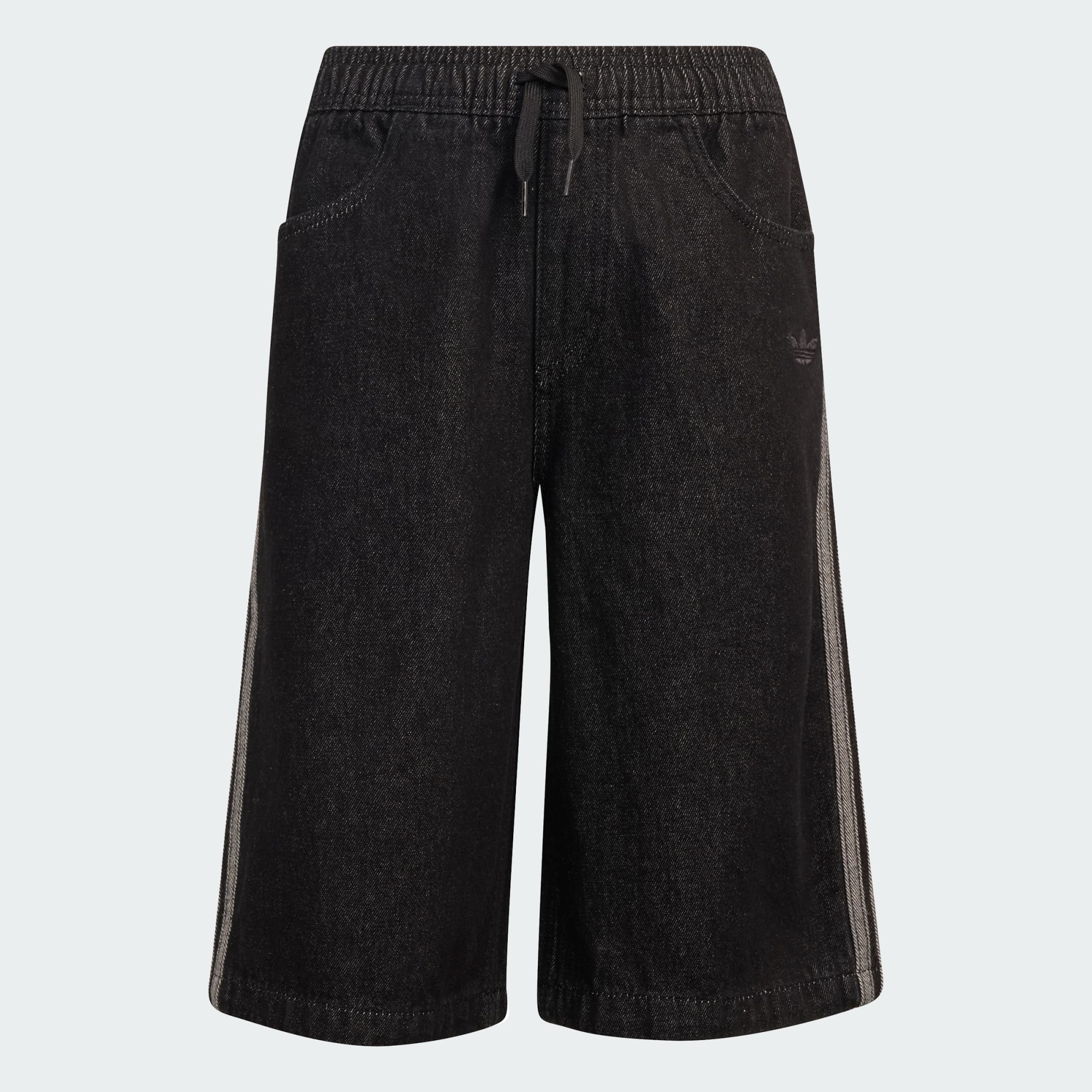 Een loose-fit denim short met trekkoordsluiting voor verstelbaarheid.