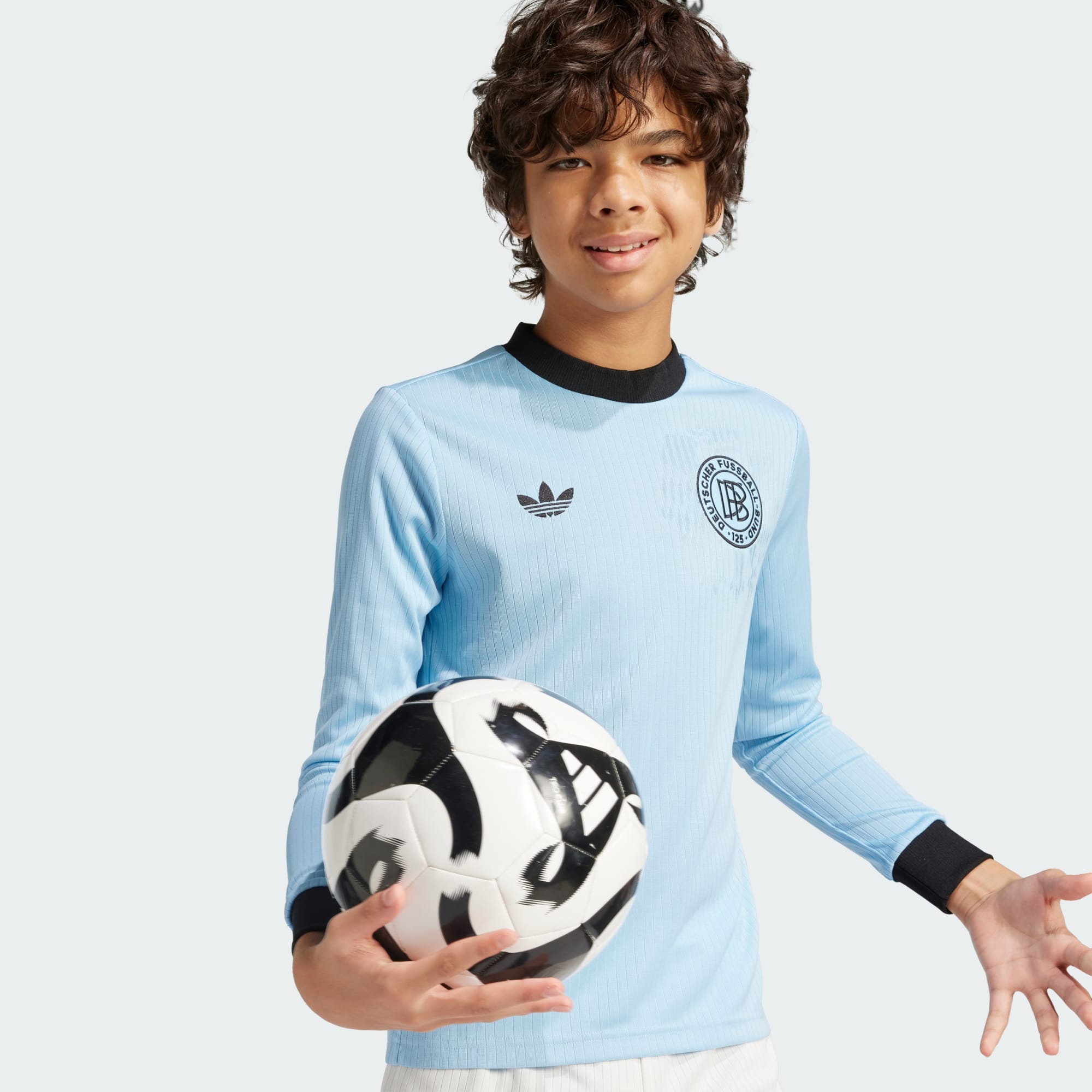 Vier de 125ste verjaardag van het Duitse elftal en hun langdurige verbintenis met de 3-Stripes. In het zachte jacquard van dit junior voetbalshirt, dat is geïnspireerd op de iconische adidas shirts die het voorgingen, zijn subtiele streepjes en een adelaar in bij elkaar passende kleuren geweven. Vochtregulerend AEROREADY houdt jonge fans comfortabel. Een logo boven de zoom verwijst naar de plaquette ter nagedachtenis aan de oprichting van de DFB in Leipzig. Dit product is gemaakt met 100% gerecyclede materialen. Door hergebruik van materialen die al eerder zijn gemaakt, helpen we afval en onze afhankelijkheid van eindige hulpbronnen te verminderen en verkleinen we de voetafdruk van de producten die we maken.