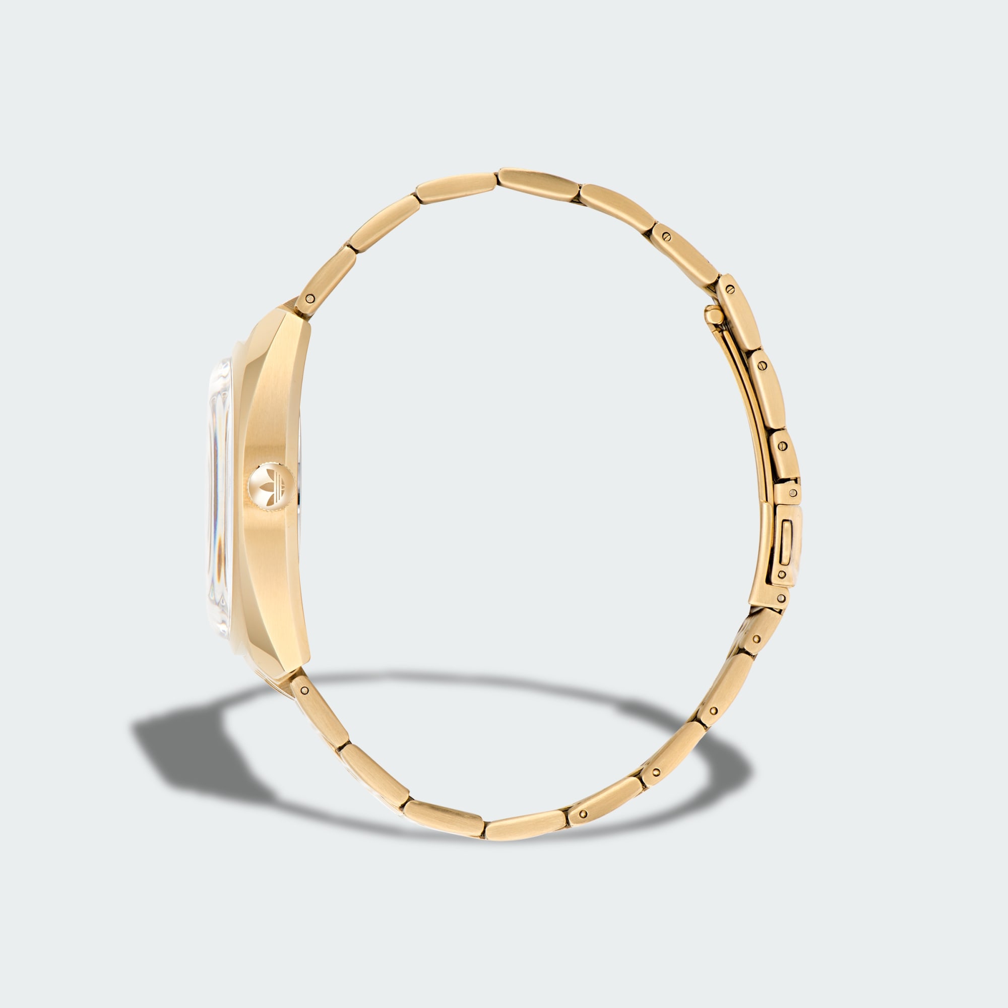 Dit adidas Edition One horloge is een elegant uurwerk met een opvallend design. De voorkant springt in het oog met een oversized, doorgesneden Trefoil-logo in het midden, ingekapseld in een gestroomlijnde roestvrijstalen kast met bollend glas. Het bandje van roestvrij staal werkt 't luxe af.