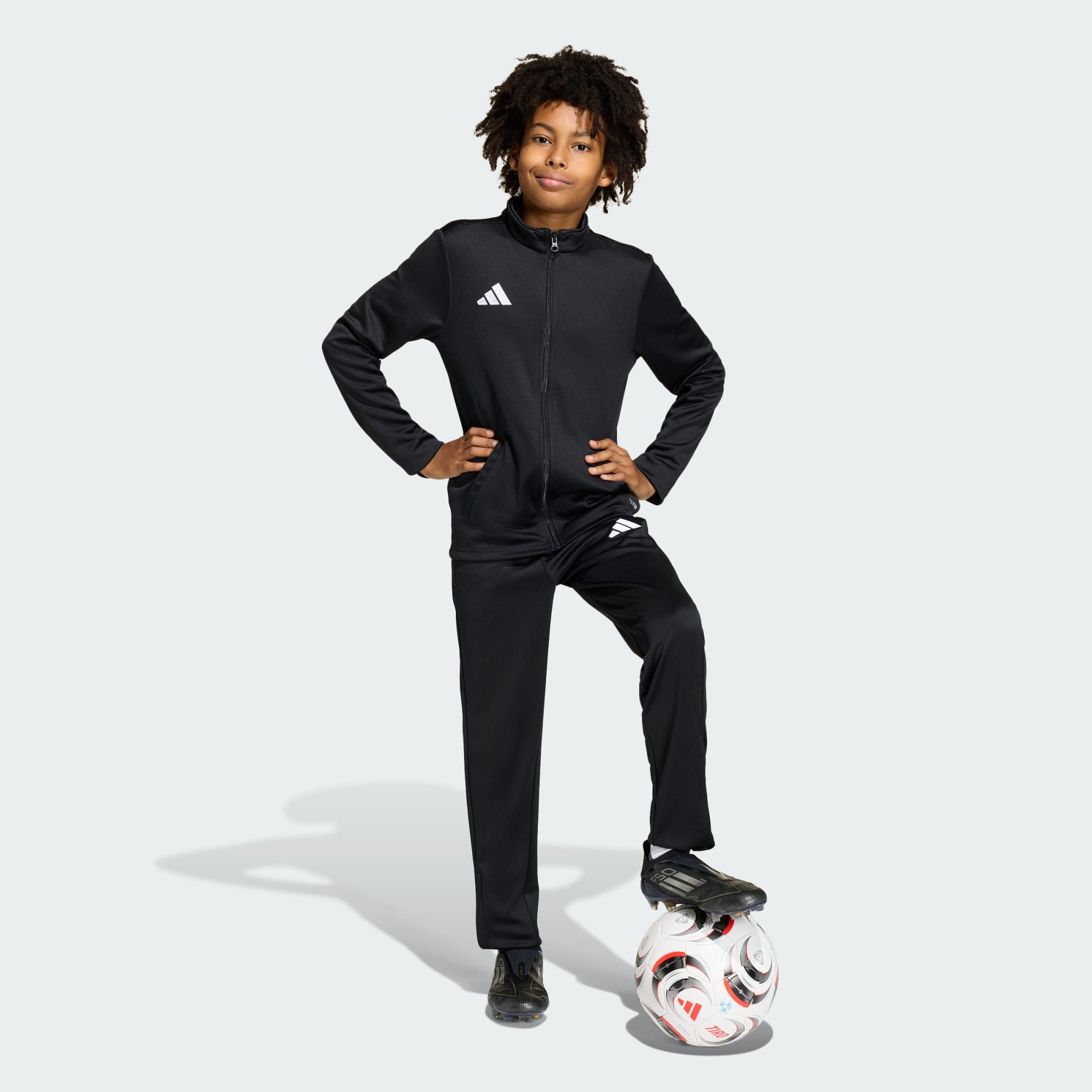 Kijk hoe je kind zelfverzekerd het veld op stapt in de Entrada26 Training broek. Deze broek, ontworpen voor jonge sporters met een passie voor voetbal, levert een geweldige mix van comfort en prestaties. De normale pasvorm biedt bewegingsgemak, zodat kinderen zich zonder afleiding op hun spel kunnen concentreren. Deze broek is gemaakt van robuuste dubbelgebreide stof om de uitdagingen van zowel training als wedstrijd te kunnen doorstaan. De geborduurde Badge of Sport voegt een vleugje adidas trots toe, waardoor deze broek een stijlvolle keuze is voor je aankomende voetbalster. Met de Climacool-technologie voert deze broek zweet af om kinderen te helpen zich koel en droog te voelen tijdens intensief spel. De taille met trekkoord is verstelbaar voor een goede pasvorm, terwijl de ritsen bij de enkels gemak bieden bij snel omkleden. Of ze hem nu dragen om te trainen of te spelen, deze broek is klaar om de bewegingen van kinderen te ondersteunen.