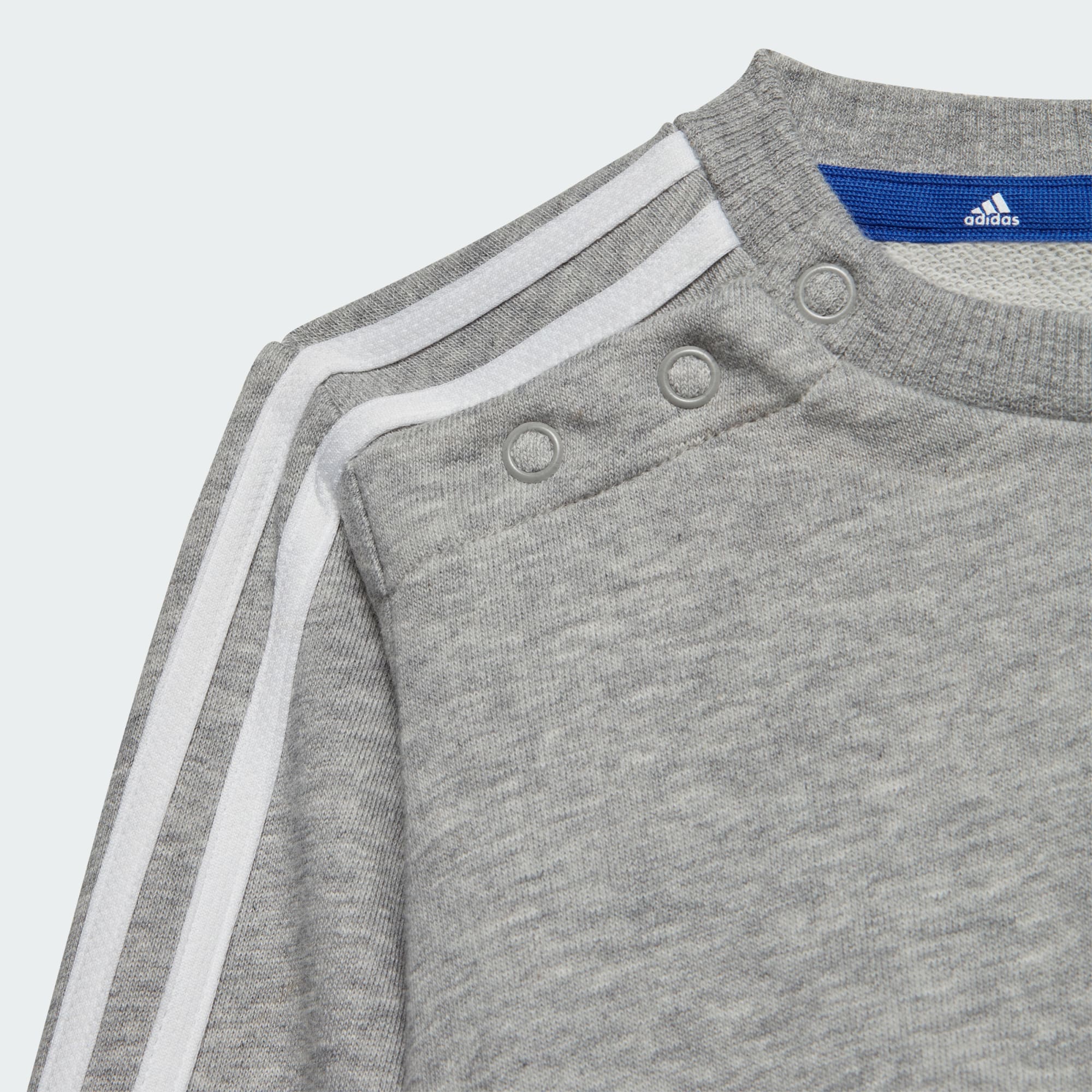 Als kleine kinderen niet schommelen, glijden of in plassen stampen, doen ze een dutje. Dit adidas joggingpak voor peuters houdt ze van begin tot eind comfortabel. Dankzij de zachte katoenmix is geen spelletje te actief. Het sweatshirt met ronde hals heeft drukknopen op de schouder voor makkelijk aan- en uittrekken. De taille van de joggingbroek kan versteld worden voor een betrouwbare pasvorm tijdens dagelijkse avonturen. Minimaal 70% van dit product bestaat uit een mix van gerecyclede en hernieuwbare materialen.