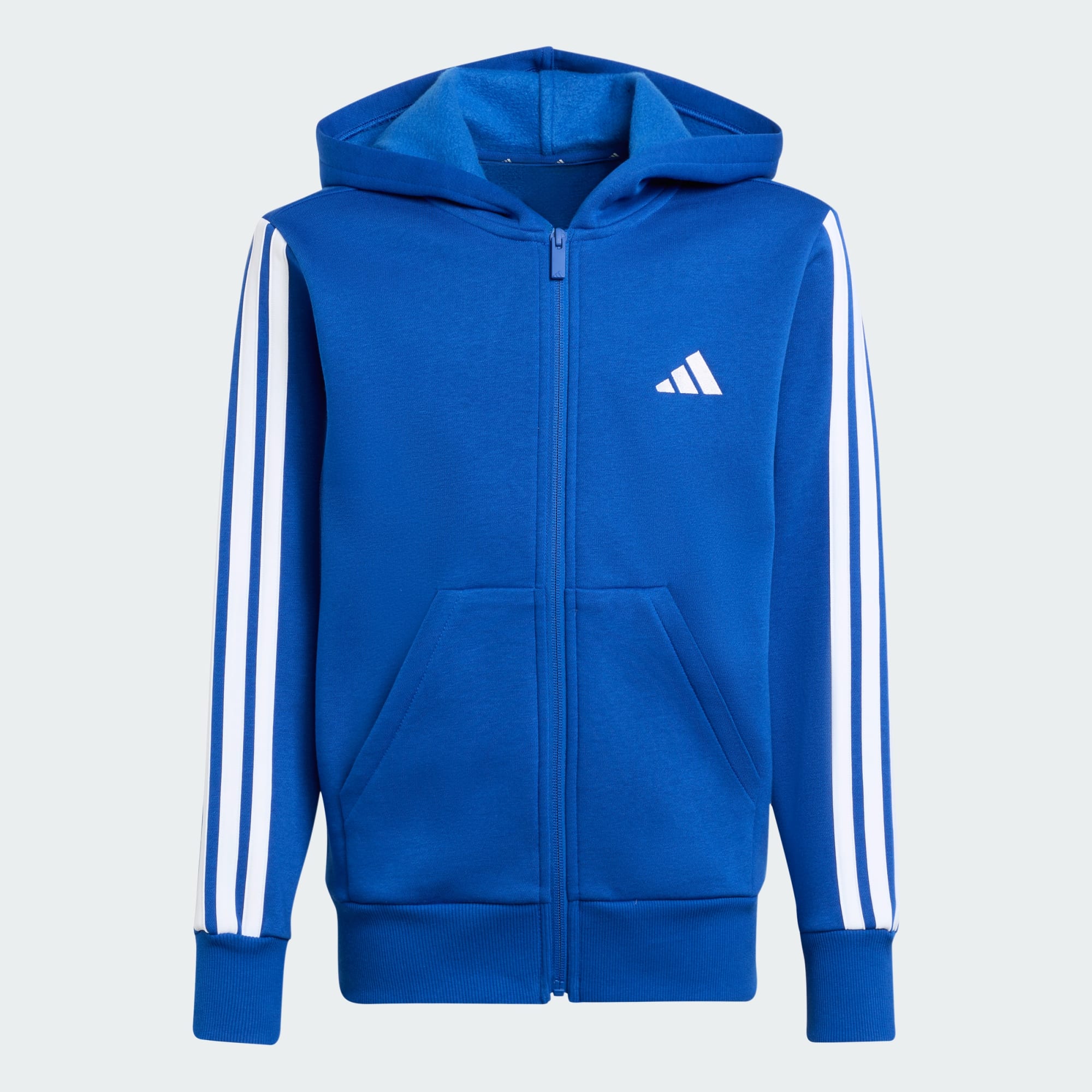 Deze junior adidas hoodie van zachte fleece is een onmisbare laag voor drukke dagen en houdt je comfortabel, waar je ook naartoe gaat. Geribbelde boorden maken 'm nog behaaglijker, en met de lange ritssluiting pas je naar behoefte de bedekking aan. Of je nu op weg bent naar school of met vrienden chilt, deze hoodie biedt sportieve stijl en casual comfort.