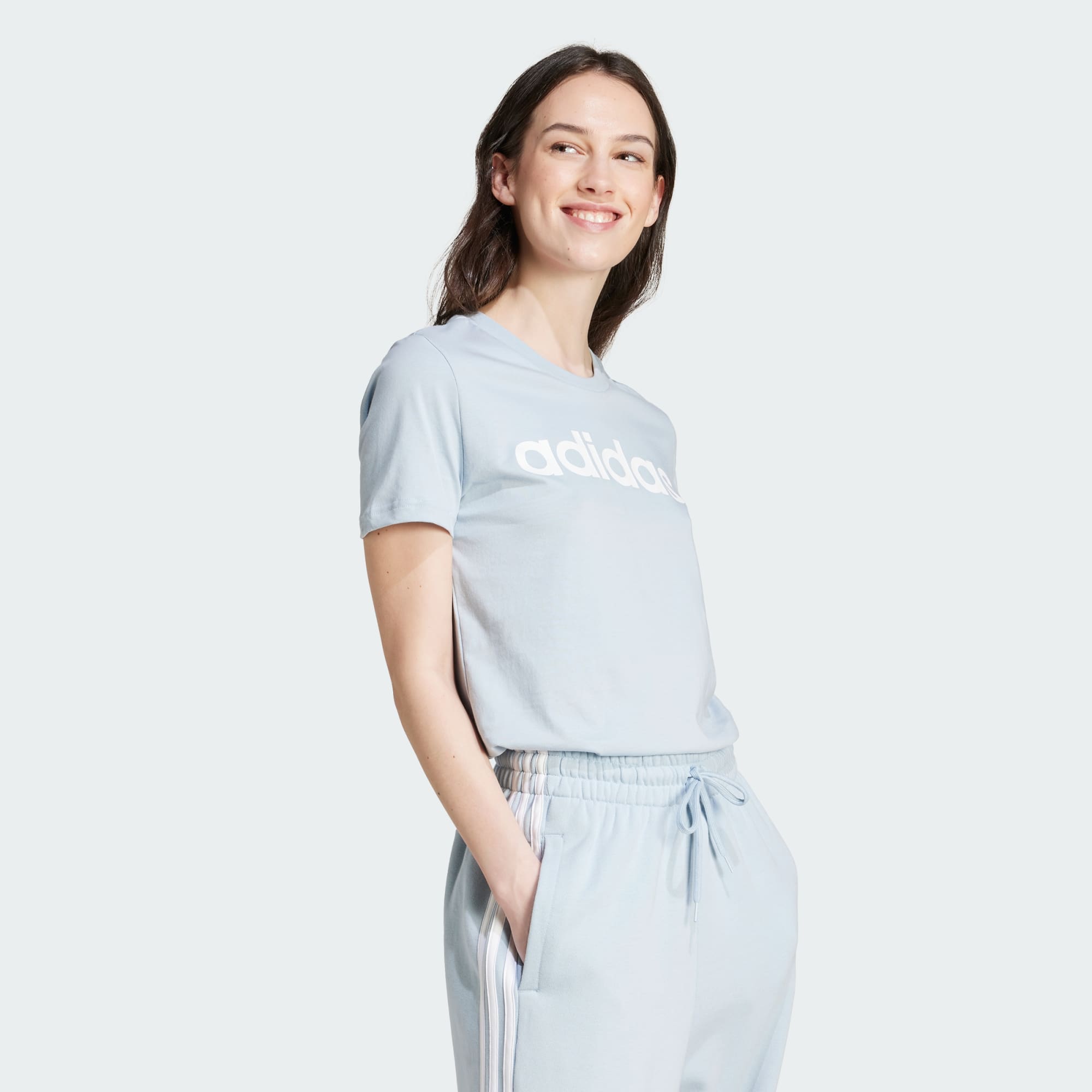 Op zoek naar een frisse, casual look die je elke dag kunt dragen? Dit slim-fit T-shirt voldoet aan al je eisen. Strakke lijnen en een gelikte adidas stijl komen samen in het comfortabele model, dat perfect past bij een joggingbroek, spijkerbroek of legging.