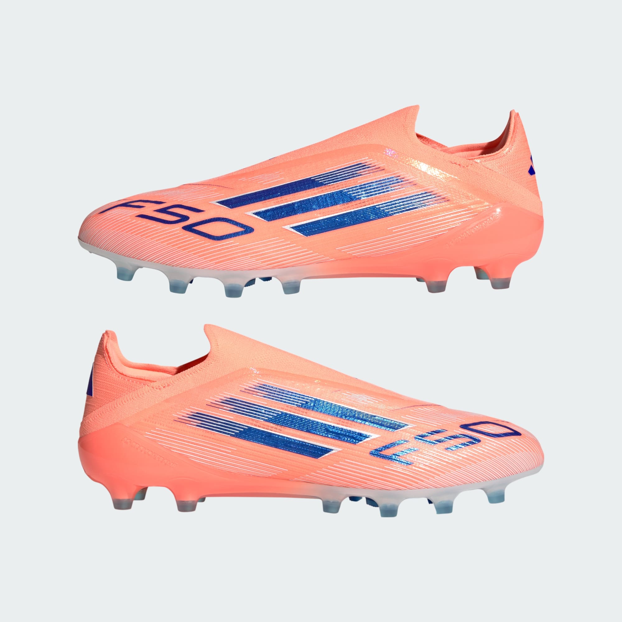 Veterloze voetbalschoenen voor rappe versnelling op kunstgras.