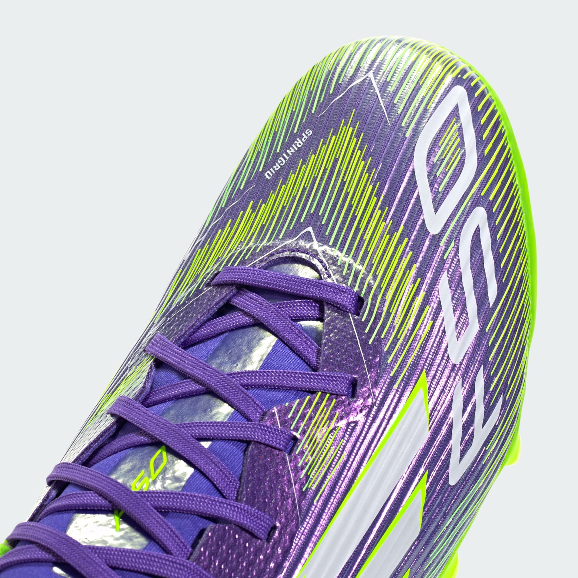 Vind jouw snelheid om jezelf te kunnen zijn op het veld. Voel de rush in adidas F50 voetbalschoenen gemaakt voor snelheid. Het Fiberskin-bovenwerk van deze League voetbalschoenen valt op met een in het oog springende Sprintgrid-print en heeft een flexibele Tunnel Tongue voor rotsvaste verankering. Een lichte loopzool ondersteunt serieuze snelheid op 2G/3G kunstgrasvelden.