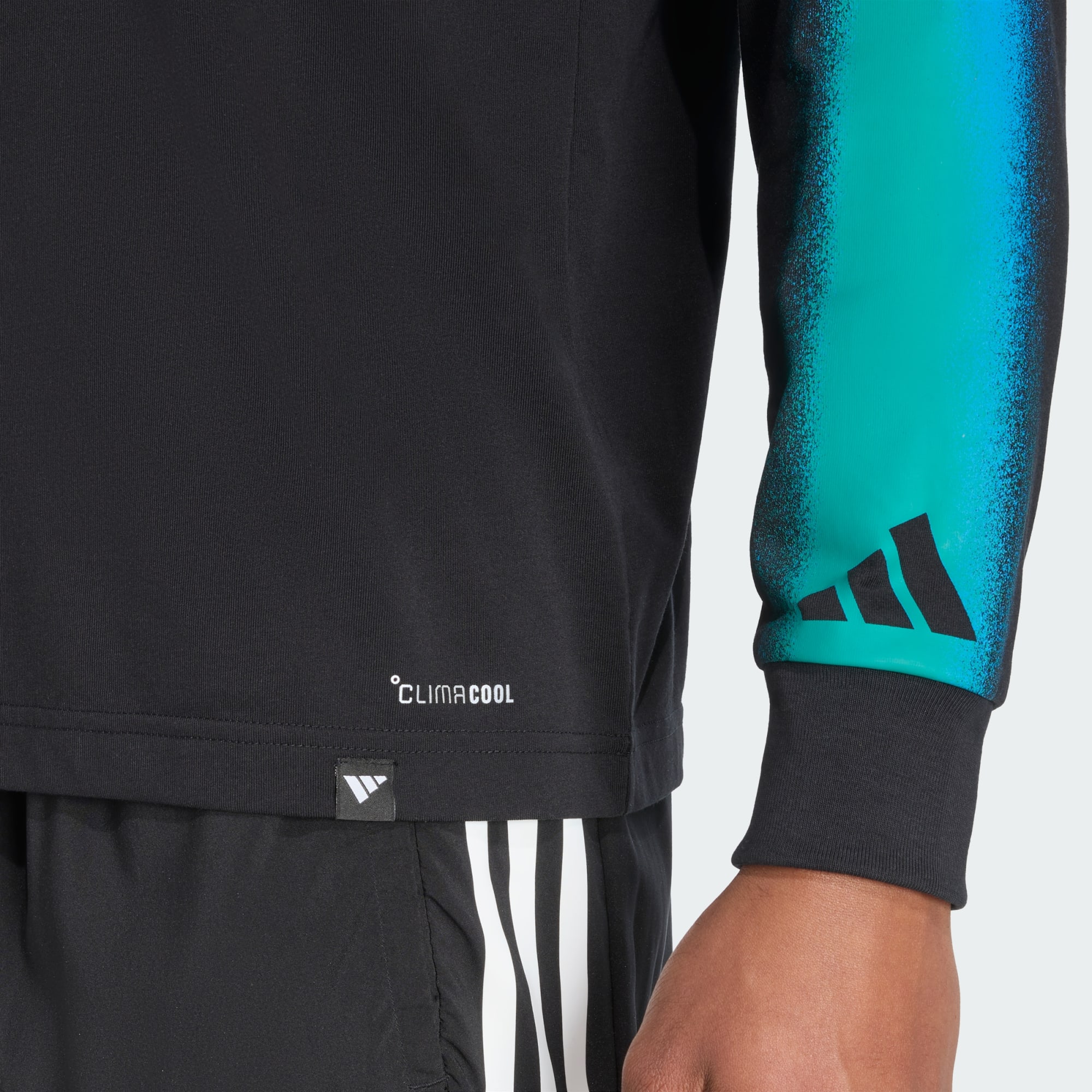 Een bedrukt T-shirt met lange mouwen en Climacool-technologie voor koele, droge prestaties.