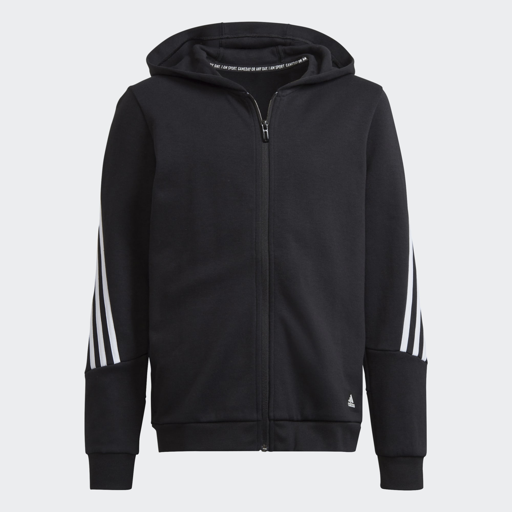 Een ritshoodie met 3-Stripes-stijl.