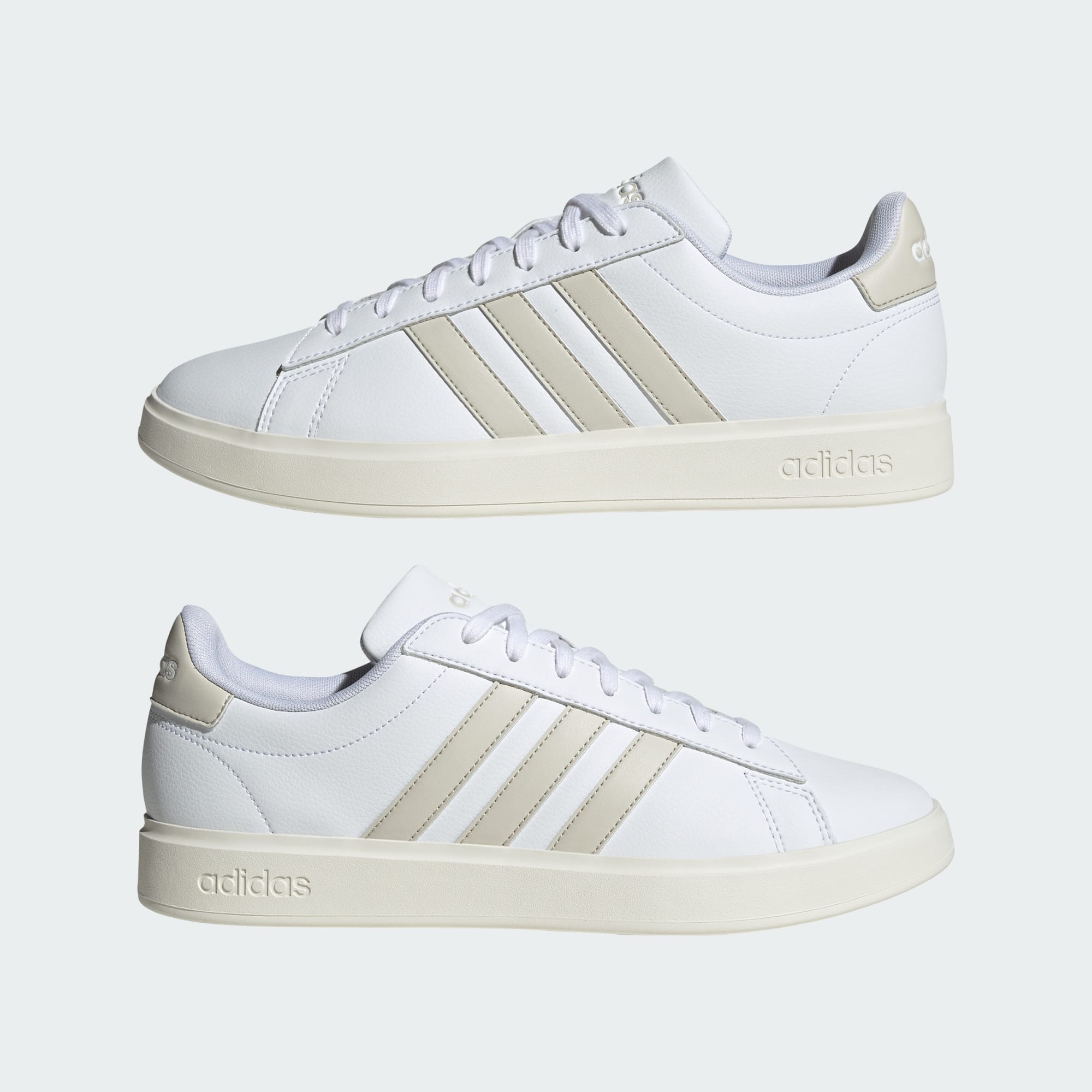Als je maar één paar sneakers zou mogen hebben, dan zou dit paar moeten zijn. Deze adidas Grand Court schoen met de klassieke 3-Stripes houden je sneakerspel scherp en clean. Door Cloudfoam Comfort-demping voelt de binnenkant als zachte kussentjes. Combineer ze met een van je favoriete broeken, want ze zijn overal en altijd op hun plek.