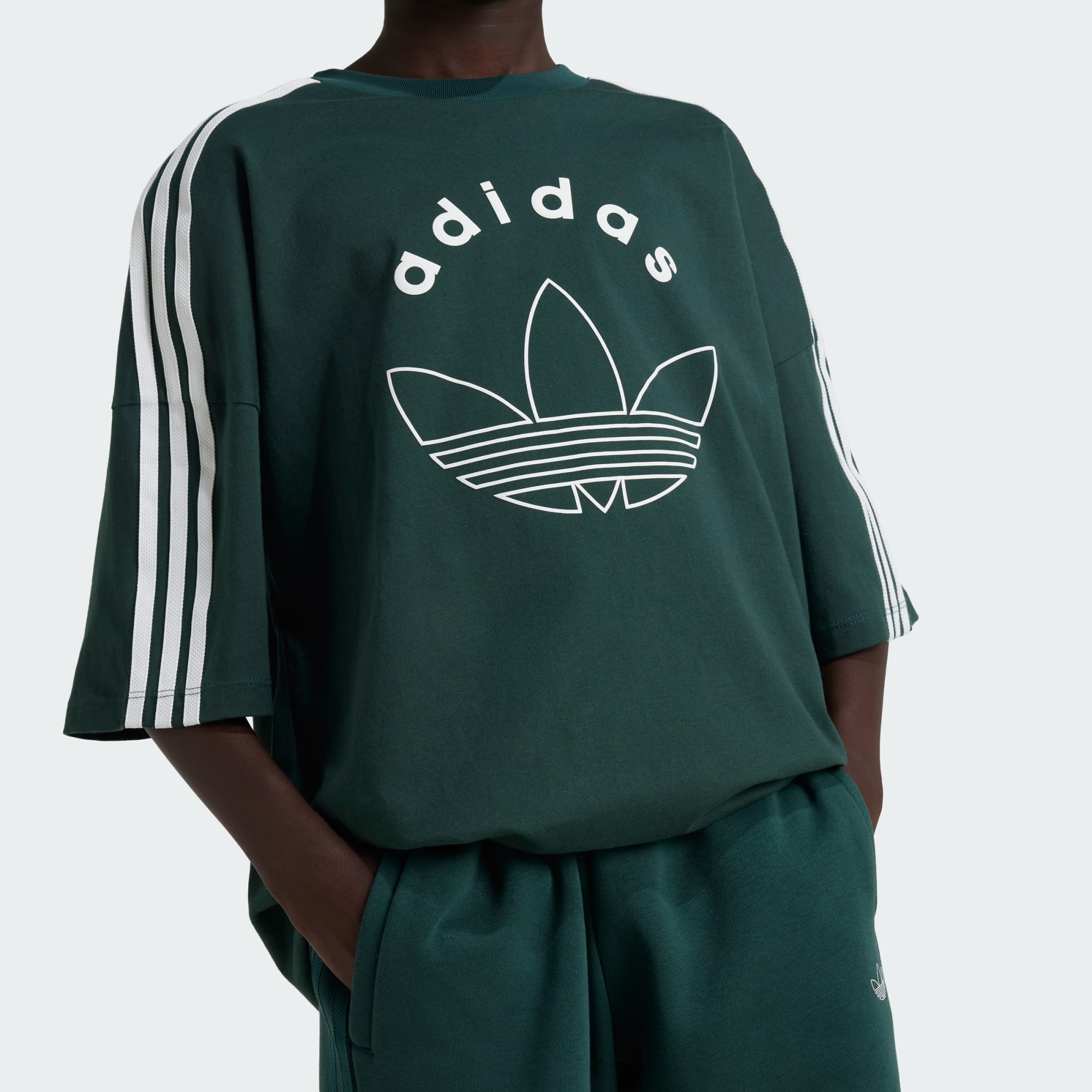 Dit junior T-shirt mixt de spirit van originaliteit met een frisse twist. Graphics met vintage invloeden brengen een eerbetoon aan adidas historie, en het losvallende model en de enkele jersey geven 't een comfortabele, casual vibe. Een geribbelde ronde hals maakt de klassieke sport-look compleet. Het katoen in dit product is verkregen via Better Cotton. Better Cotton wordt ingekocht via een handelsketenmodel genaamd massabalans. Dit betekent dat Better Cotton niet fysiek te herleiden is tot eindproducten. Meer informatie vind je hier: https://bettercotton.org/who-we-are/our-logo/