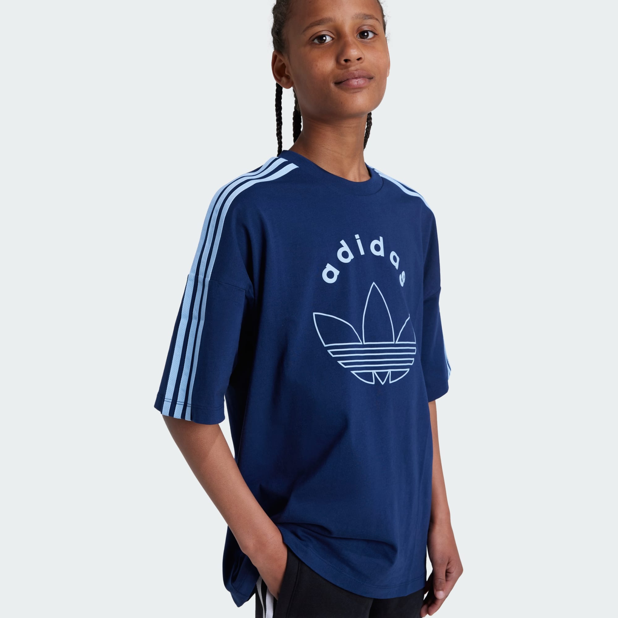 Dit junior T-shirt mixt de spirit van originaliteit met een frisse twist. Graphics met vintage invloeden brengen een eerbetoon aan adidas historie, en het losvallende model en de enkele jersey geven 't een comfortabele, casual vibe. Een geribbelde ronde hals maakt de klassieke sport-look compleet. Het katoen in dit product is verkregen via Better Cotton. Better Cotton wordt ingekocht via een handelsketenmodel genaamd massabalans. Dit betekent dat Better Cotton niet fysiek te herleiden is tot eindproducten. Meer informatie vind je hier: https://bettercotton.org/who-we-are/our-logo/