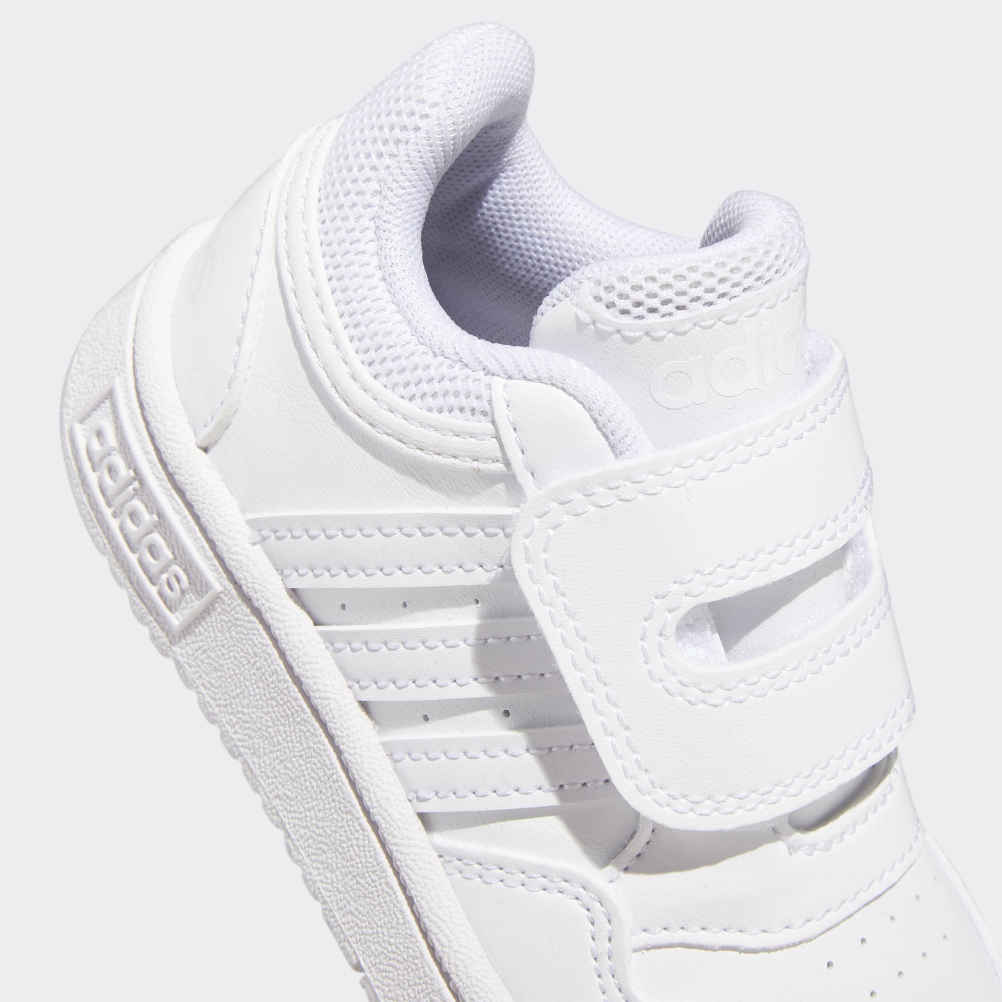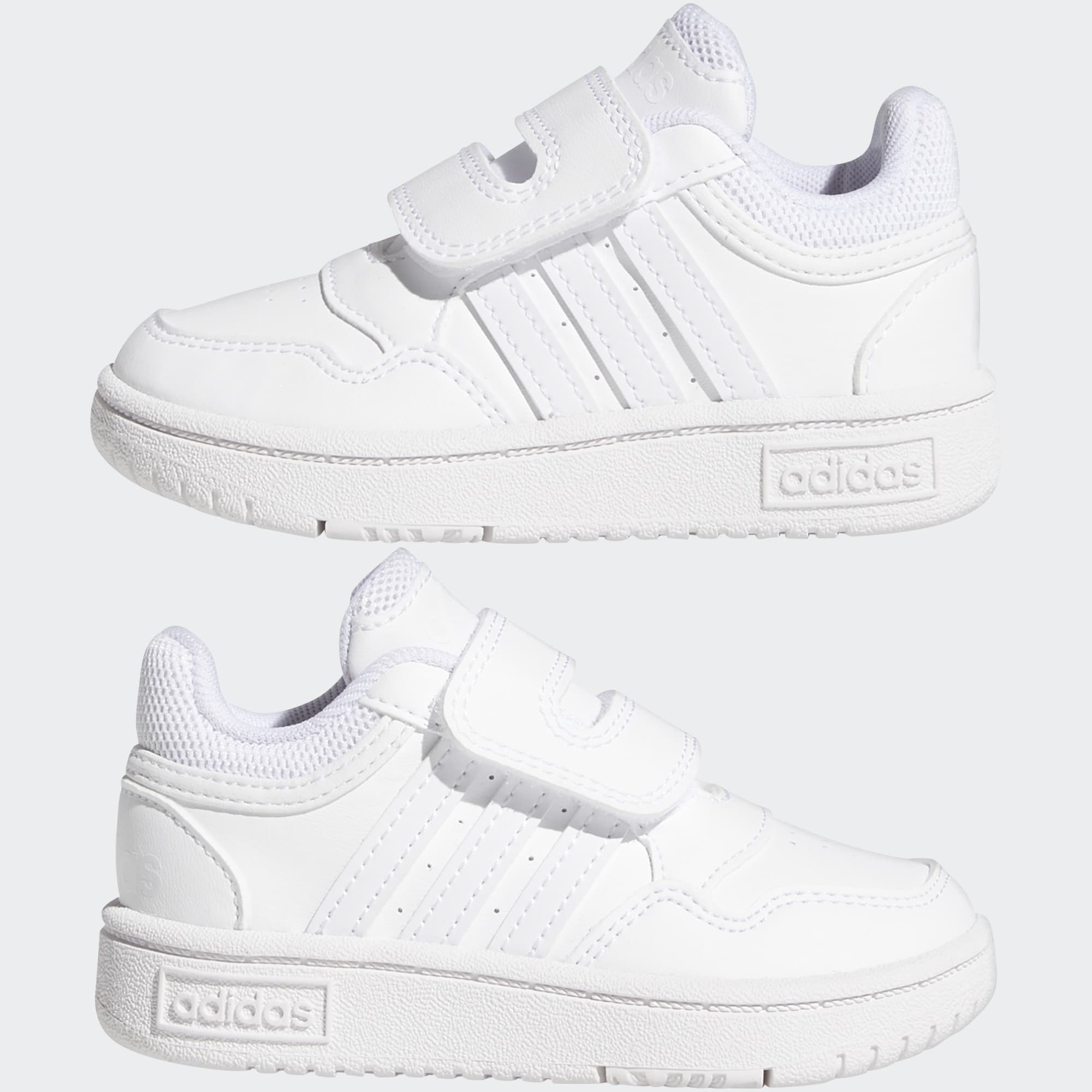 Geef de garderobe van je kleintje wat op basketbal geïnspireerde stijl. Deze adidas peuterschoen heeft een lichtgewicht bovenwerk van synthetisch leer dat er chic uitziet, maar kleine voetjes niet afremt. Dankzij de klittenbandsluiting trek je ze makkelijk aan om zonder gedoe de deur uit te kunnen. De dempende middenzool en cupzoolconstructie bieden comfort en ondersteuning bij die wiebelige eerste stapjes.