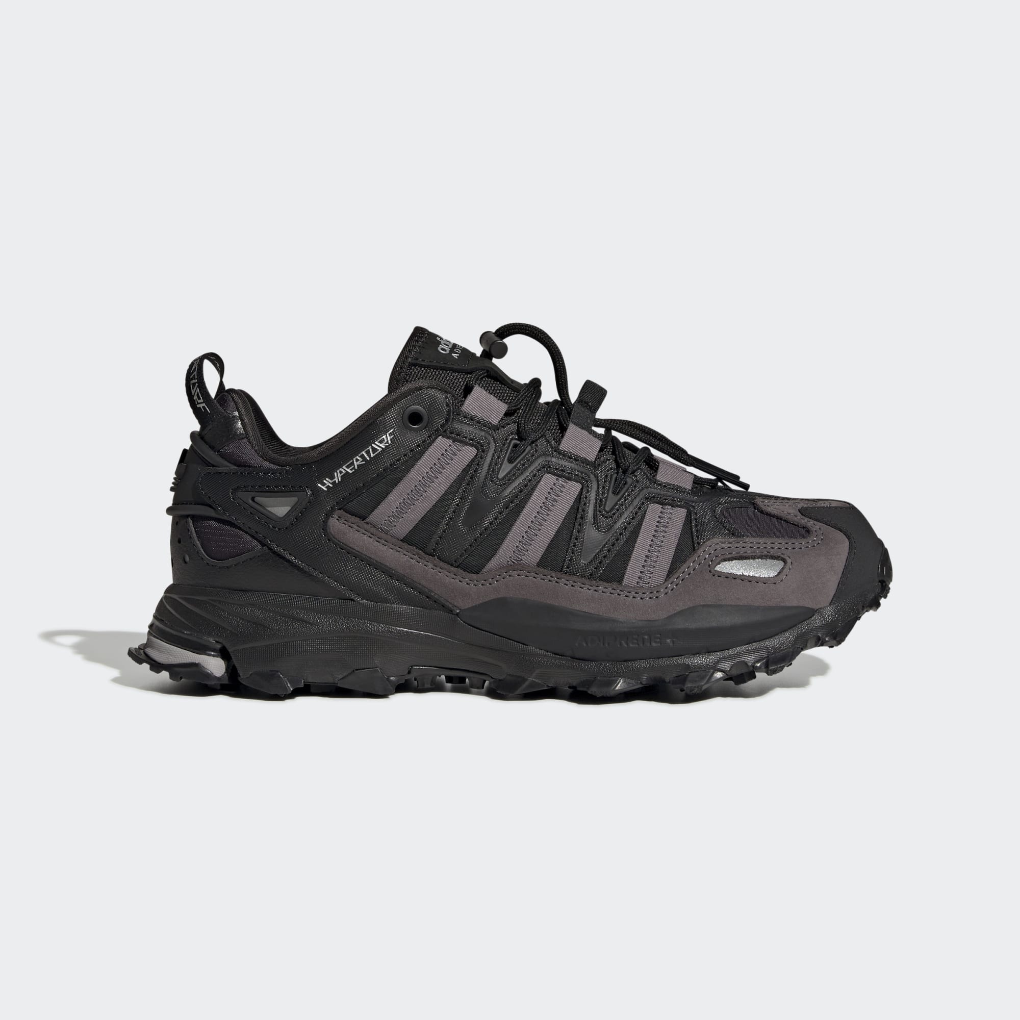 Je hoeft niet ver te reizen om avontuur te vinden. Stap gewoon je voordeur uit en verdwijn in de zinderende spanning van de stad. Dat gaat nóg beter met deze adidas Hyperturf schoenen aan je voeten. Het design heeft de ruige stijl van outdoorschoenen, met een robuust bovenwerk dat bestaat uit suède, nubuck en ripstop materiaal. De schokabsorberende Adiprene+-demping en FORMOTION zorgen voor het comfort. Nu is het tijd om te ontdekken.