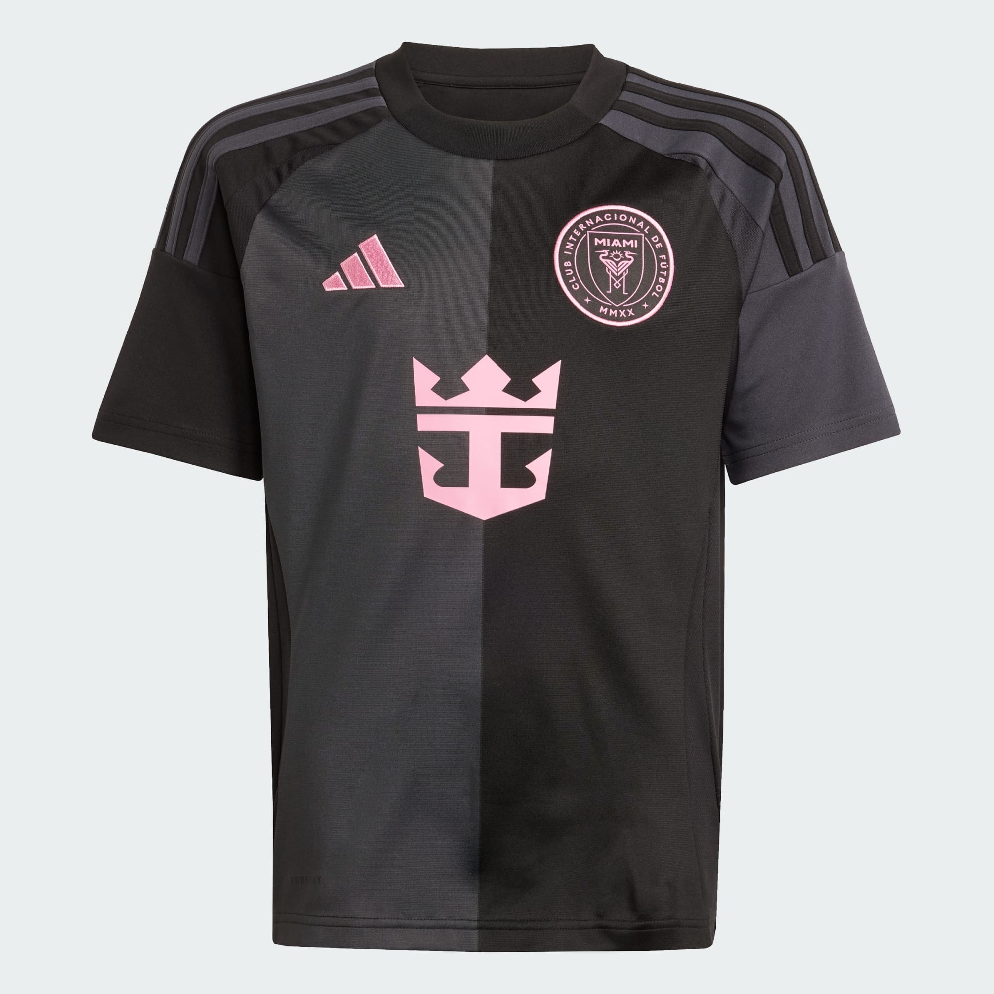 Neem Miami-stijl mee het stadion in met dit junior Inter Miami CF uitshirt van adidas. Het voor supporters gemaakt shirt straalt elegantie uit met roze details op een half zwarte en half donkergrijze achtergrond. Vochtregulerend AEROREADY en zachte stof houden fans comfortabel. Een opgenaaid clubembleem en Messi-details laten zien dat je eersteklas voetbal waardeert.