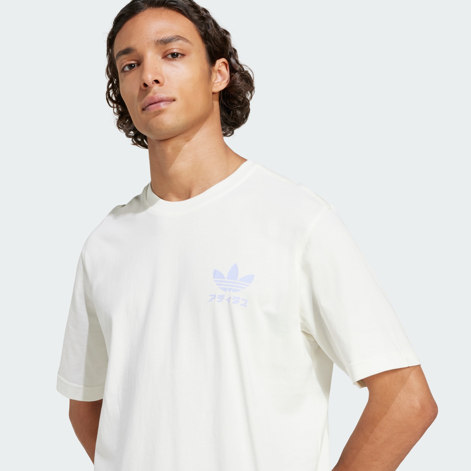 Een bedrukt T-shirt met een speelse spirit. Dit adidas T-shirt heeft een mascotte-achtig figuurtje met een expressief gezicht en de naam van adidas in het Japans. Het grote design en het karakteristieke Trefoil-logo creëren een opvallende look die perfect is voor casual uitstapjes. Het shirt is gemaakt van zachte enkele jersey en past goed over een ander T-shirt of onder een jack.