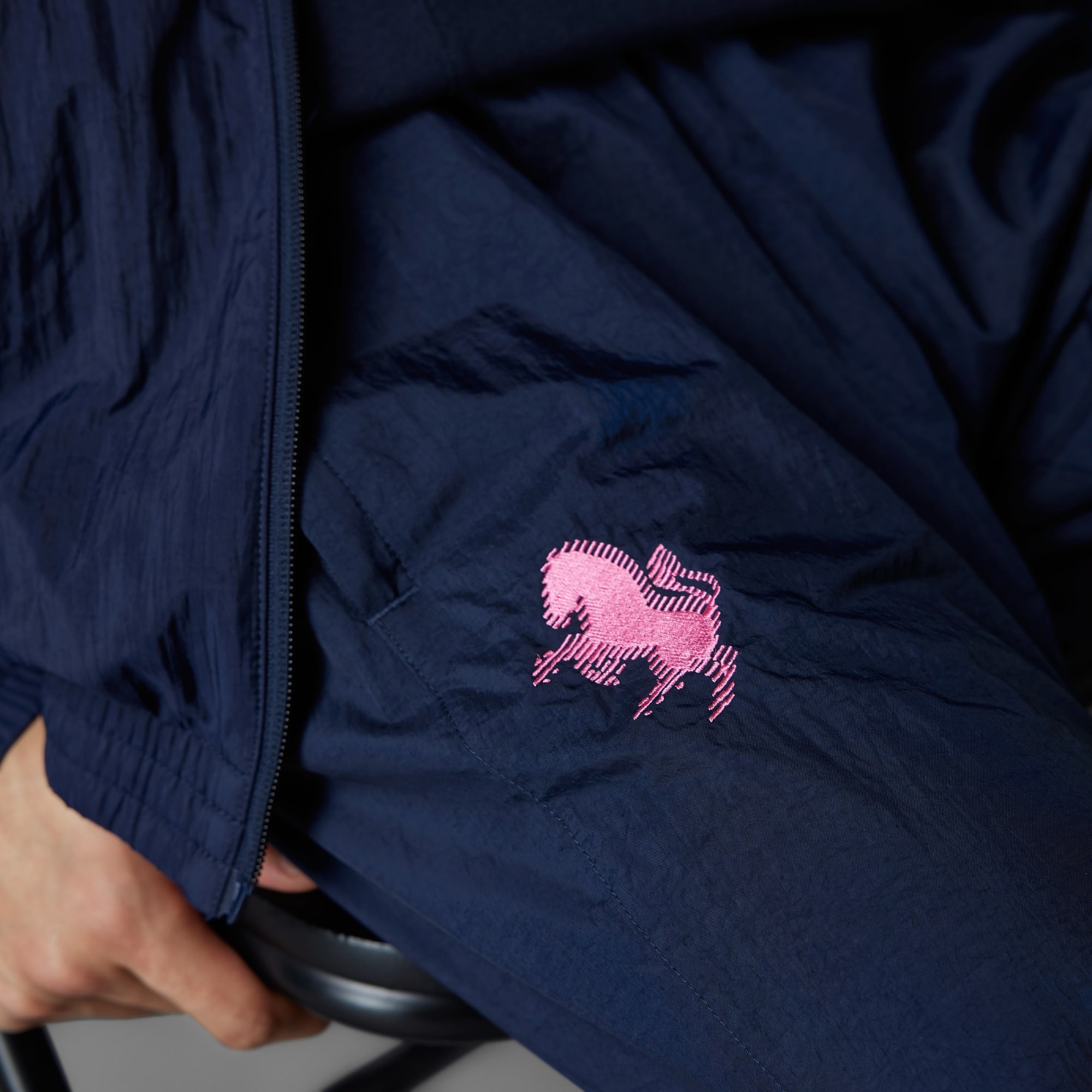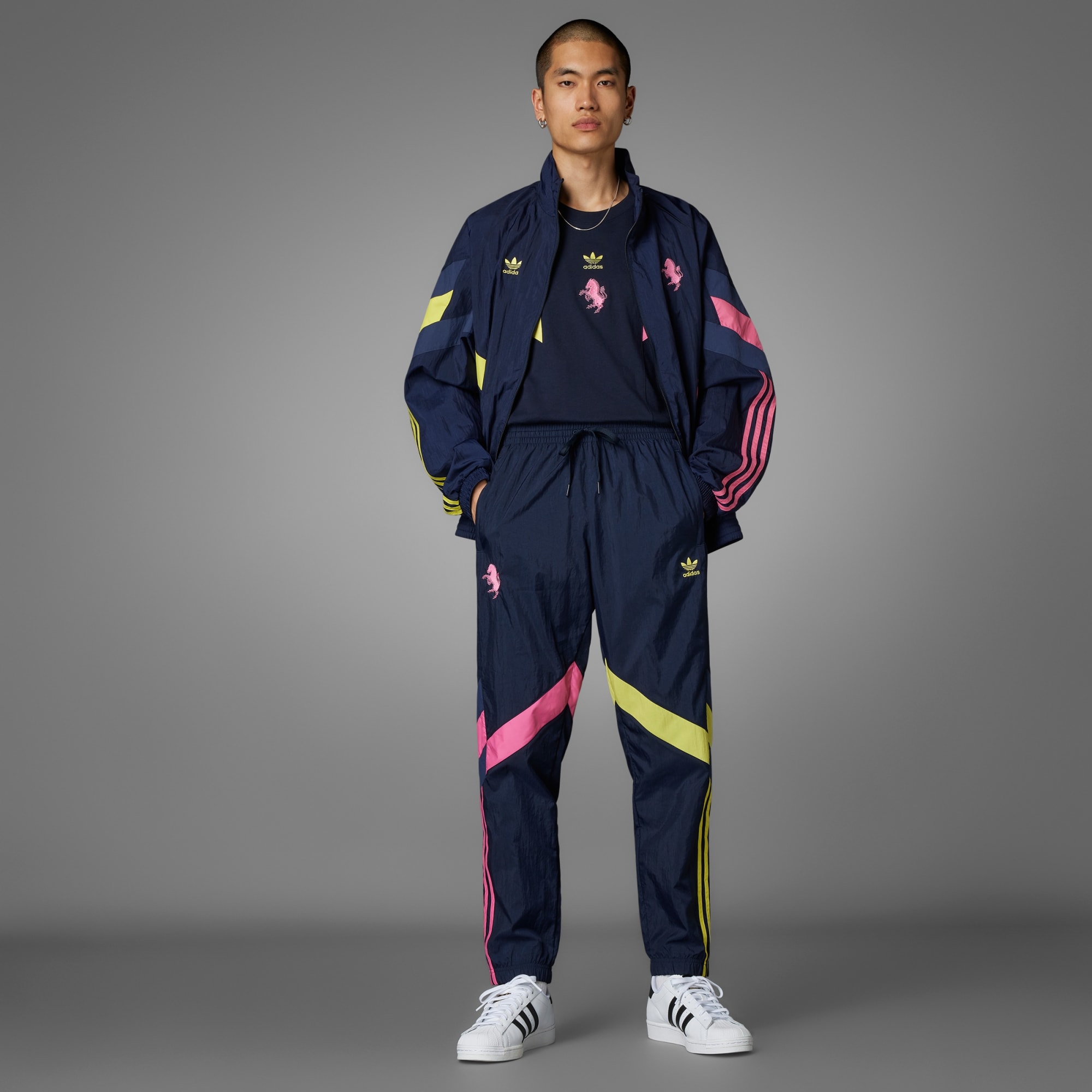 Een zinderende Juventus trainingsbroek die deels is gemaakt met gerecycled materiaal.