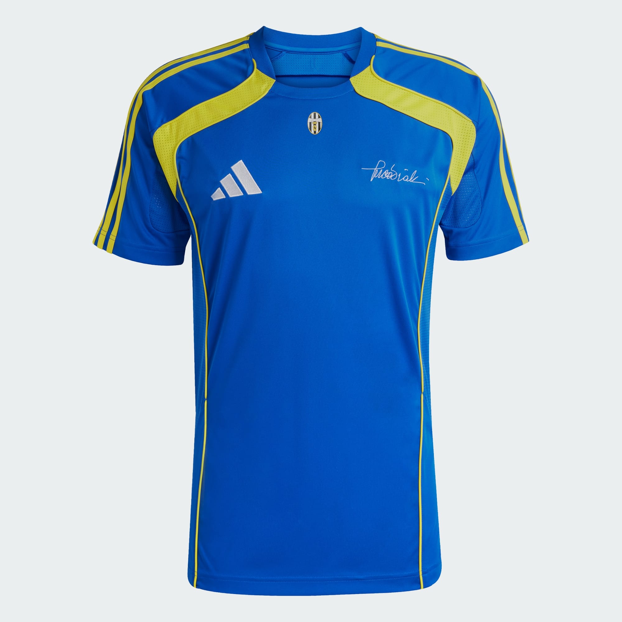 Dit voetbalshirt, afkomstig uit een speciale adidas collectie die is gemaakt in samenwerking met de Vialli Foundation, brengt een eerbetoon aan een Juventus legende en de Europese titel die hij in 1996 won met zijn team. Het is uitgevoerd in blauw en geel, geïnspireerd op het tenue uit die gedenkwaardige finale, en de zachte, lichte stof houdt je comfortabel, en een vintage badge en de handtekening van Gianluca Vialli geven 't voetbalklasse.